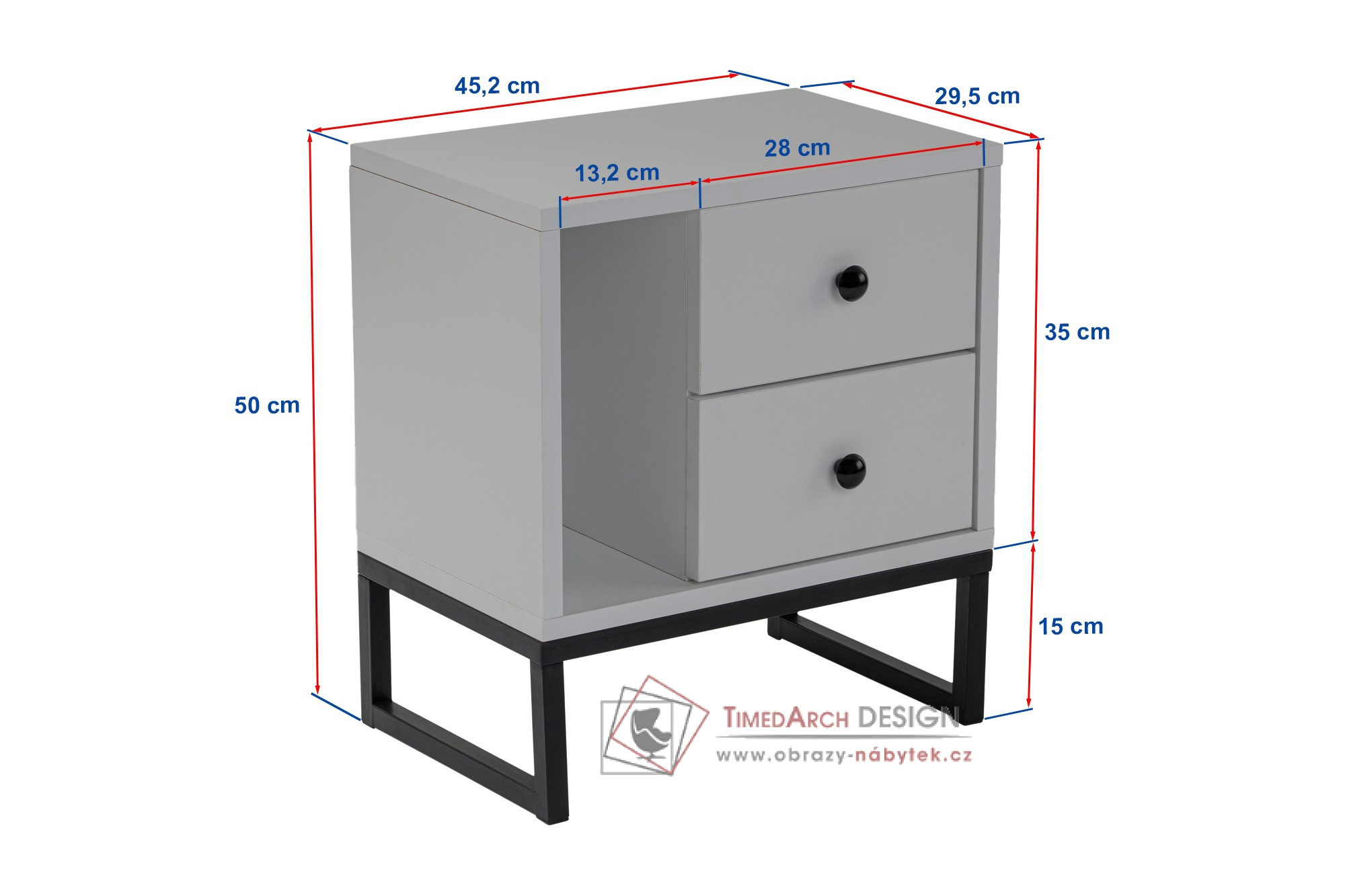 S rozměry 45,2 cm na šířku, 50 cm na výšku a 29,5 cm na hloubku nabízí tento noční stolek dostatek úložného prostoru pro všechny vaše nezbytnosti před spaním. Ať už potřebujete místo pro uložení knih, brýlí nebo noční péče o pleť, tento noční stolek vám s tím pomůže.