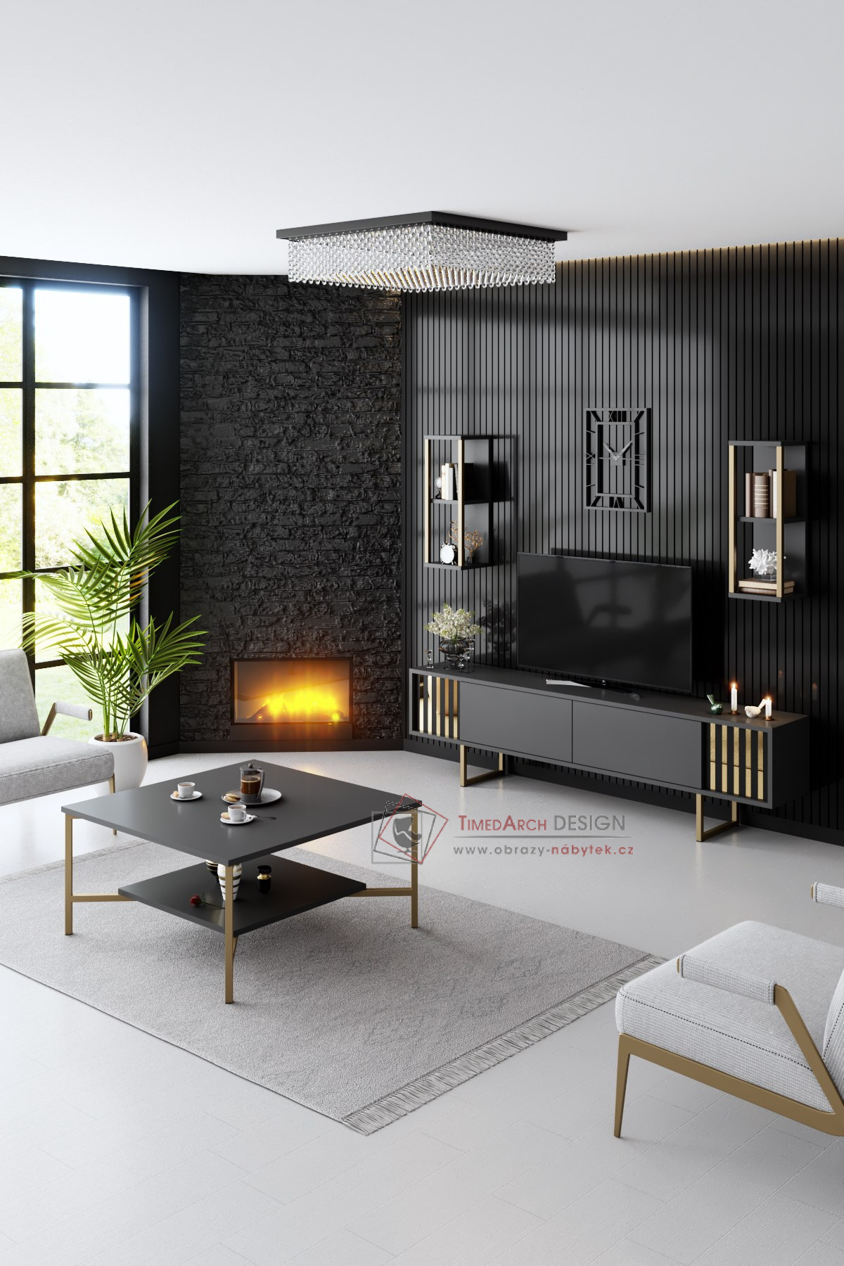 Proměňte svůj obývací pokoj s touto elegantní a moderní obývací stěnou GOLD LINE!