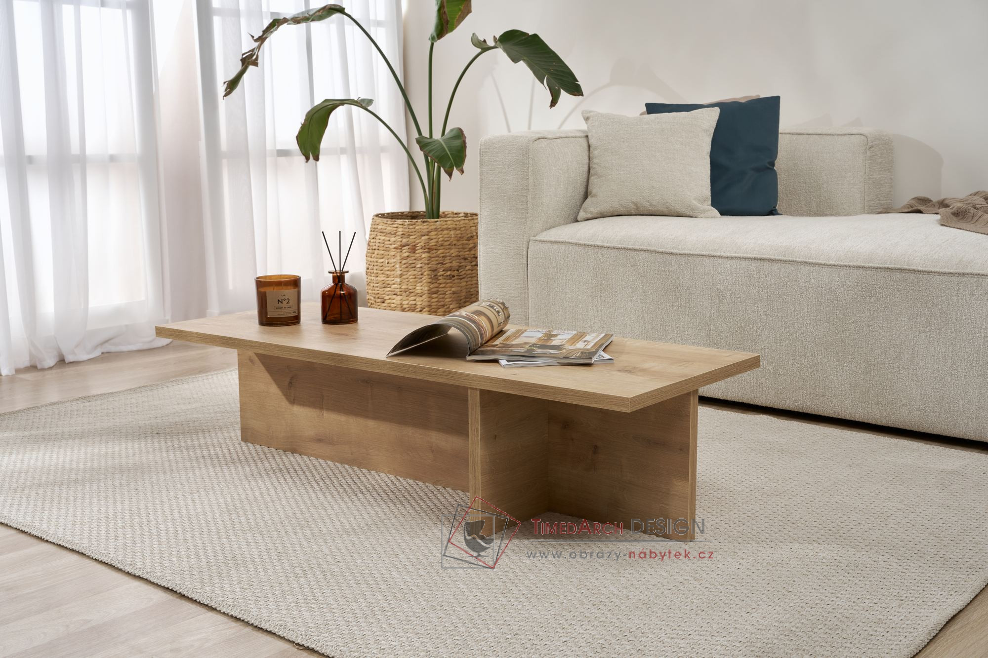 Tento konferenční stolek je vyroben ze 100% dřevotřísky s melaminovým povlakem a je nejen stylový, ale také odolný a má dlouhou životnost. Tloušťka 25 mm zajišťuje stabilitu a robustnost, zatímco šířka 120 cm poskytuje dostatek prostoru pro vaše oblíbené knihy, časopisy nebo dekorativní předměty.