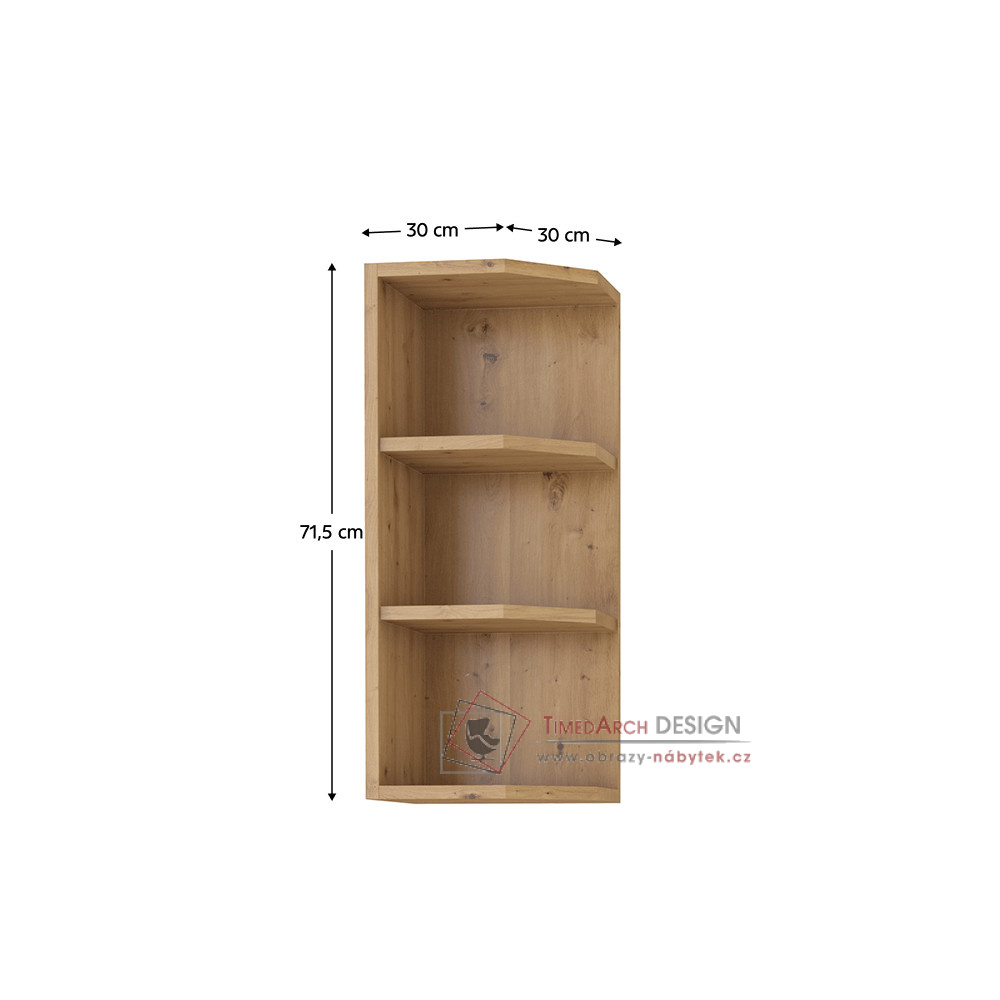 Horní skříňka Monrovia G-72 ZAK je bez dvířek. Celá je v provedení dub artisan. Vnitřek skříňky je se 2-mi policemi.