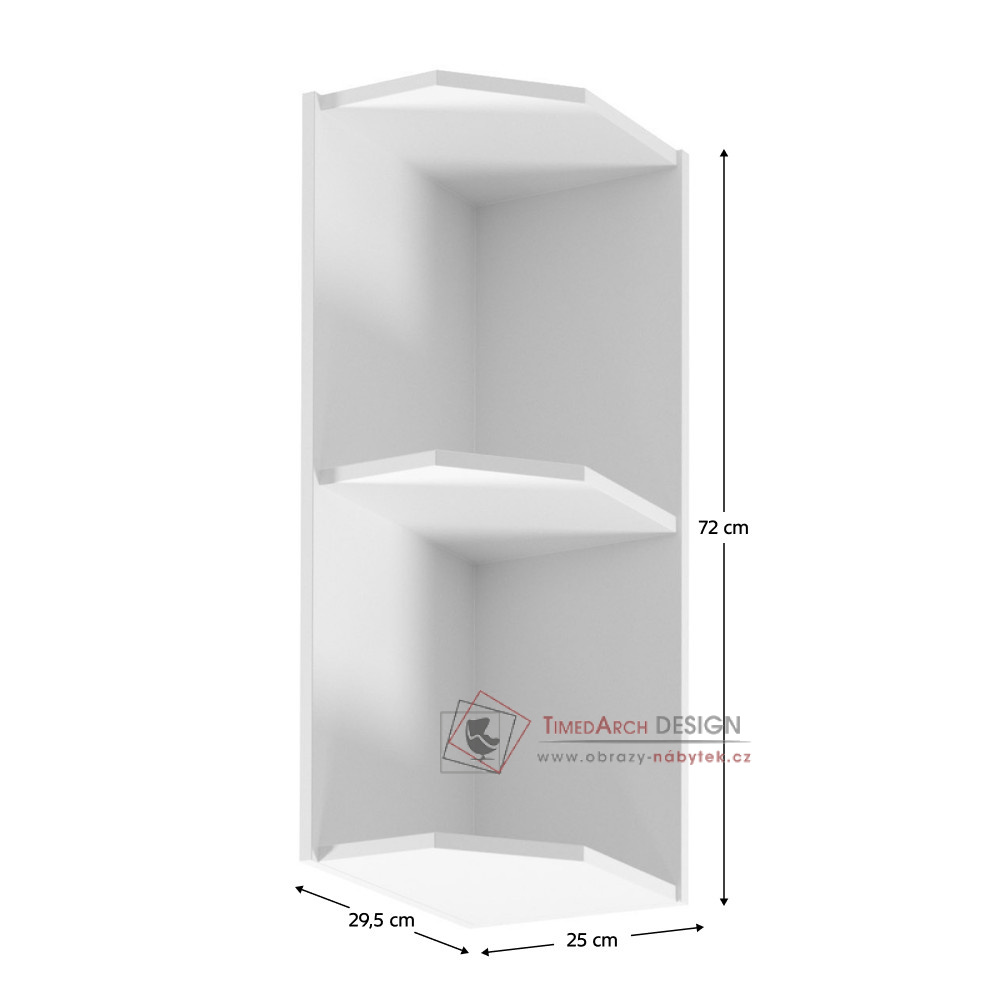 Horní rohová skříňka ROYAL G25PZ je s policí. Skříňka je univerzální, lze ji zavěsit jako ukončení horních skříněk z pravé i levé strany.