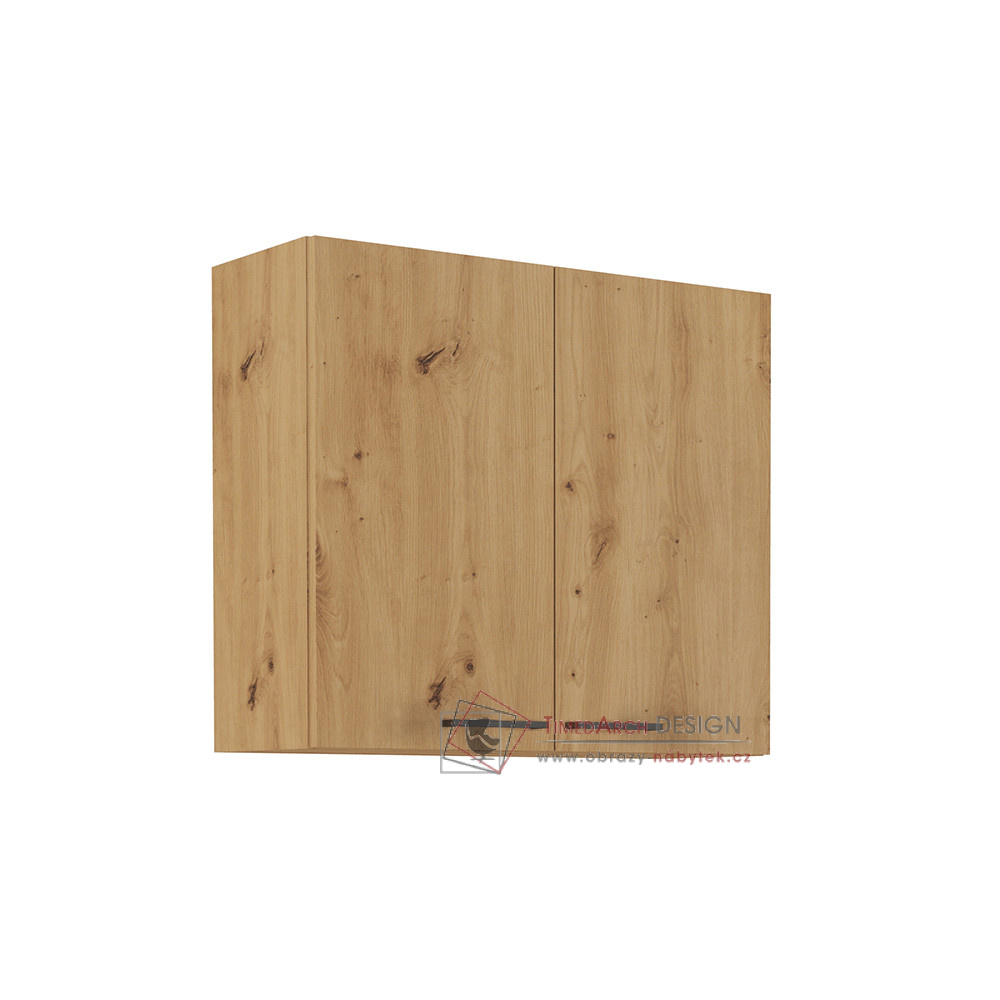 Horní skříňka Monrovia 80 G-72 2F je s dvířky. Celá skříňka je v provedení dub artisan. Vnitřek skříně je bílý. Dvířka se otevírají pomocí úchytky. Vyniká také tichým dorazem dvířek.