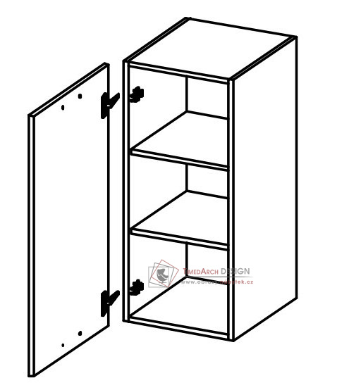 Horní skříňka 1-dveřová W30 KARMEN je vyrobená z laminované DTD, dvířka z MDF.