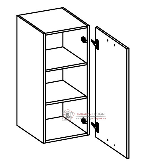 Horní skříňka 1-dveřová W40 KARMEN je vyrobená z laminované DTD, dvířka z MDF.
