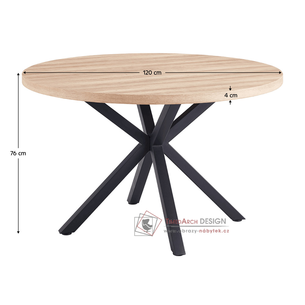 Charakteristický industriálním stylem, pro který je vlastní nedokonalý povrch, masivní kovová konstrukce a mohutný vzhled. Barevná kombinace je pastvou pro oči. Dodá vašemu interiéru šmrnc a ideální kontrast do každé místnosti. Sestává z barevné kombinace dub sonoma na stolové desce v spojení s černými kovovými nohami. Ty dodávají stolu patřičnou stabilitu. U stolu se pohodlně posadí 4 lidé.