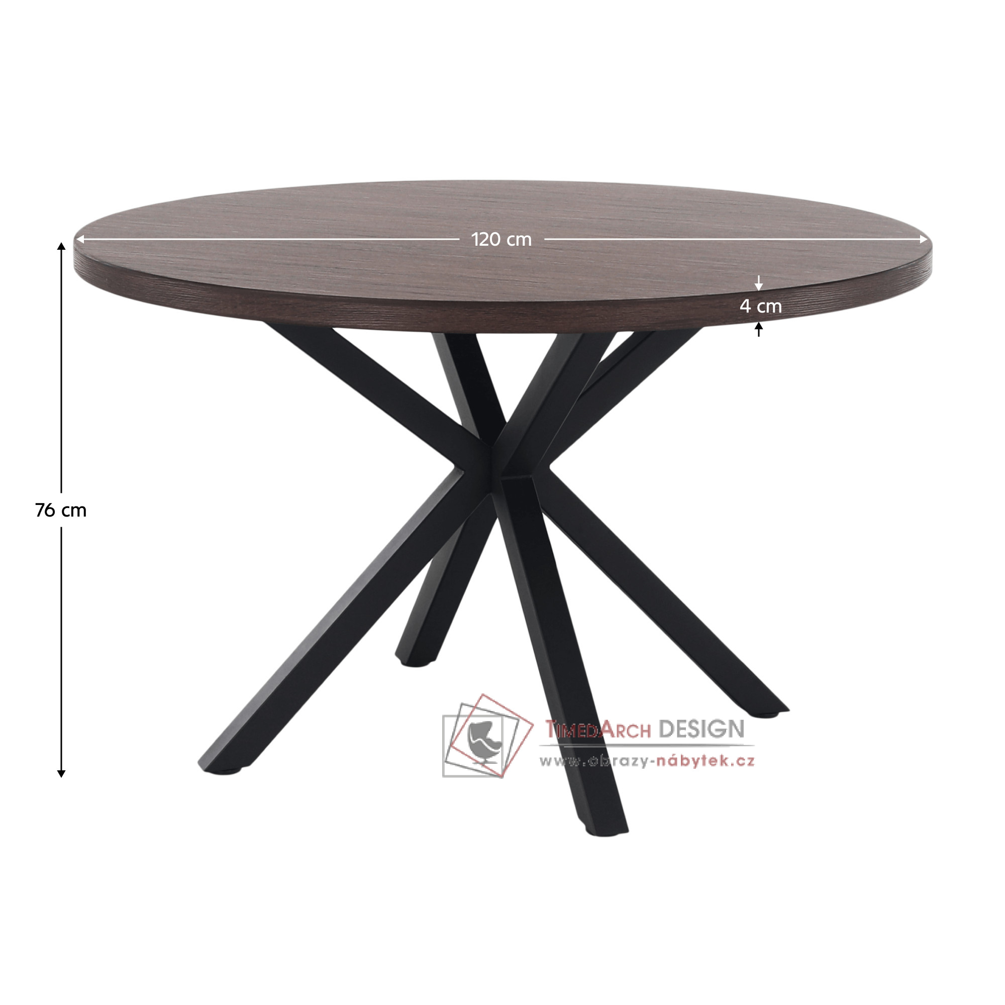 Charakteristický industriálním stylem, pro který je vlastní nedokonalý povrch, masivní kovová konstrukce a mohutný vzhled. Barevná kombinace je pastvou pro oči. Dodá vašemu interiéru šmrnc a ideální kontrast do každé místnosti. Sestává z barevné kombinace tmavý duba na stolové desce v spojení s černými kovovými nohami. Ty dodávají stolu patřičnou stabilitu. U stolu se pohodlně posadí 4 lidé.