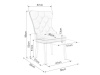 Podnož z dřevěného masivu je černé barvy. Čalounění sedáku a opěráku aksamitovou látkou černé barvy (Bluvel 19). Kovové zdobení po obvodu a na zádech židle.