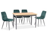 Podnož židle je kovová černé barvy. Čalounění sedáku a opěráku aksamitovou látkou barvy zelené.