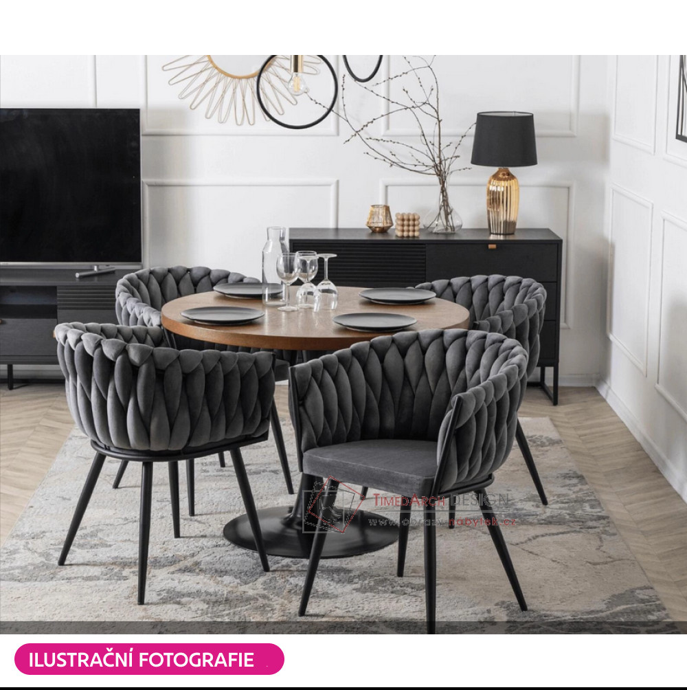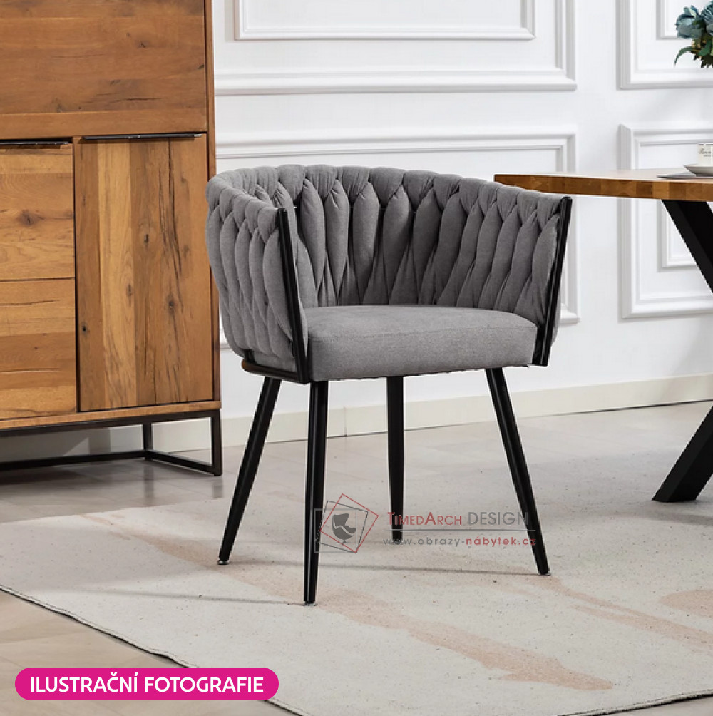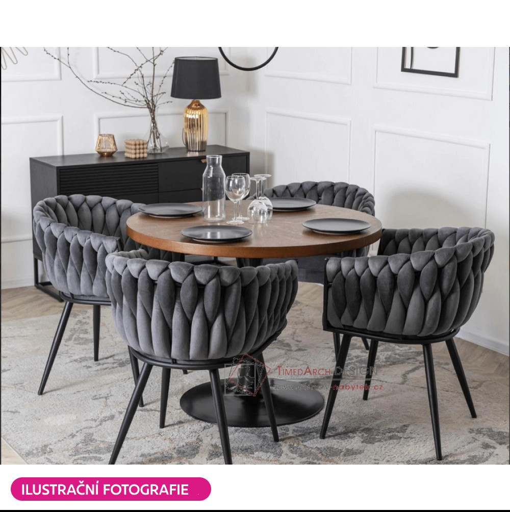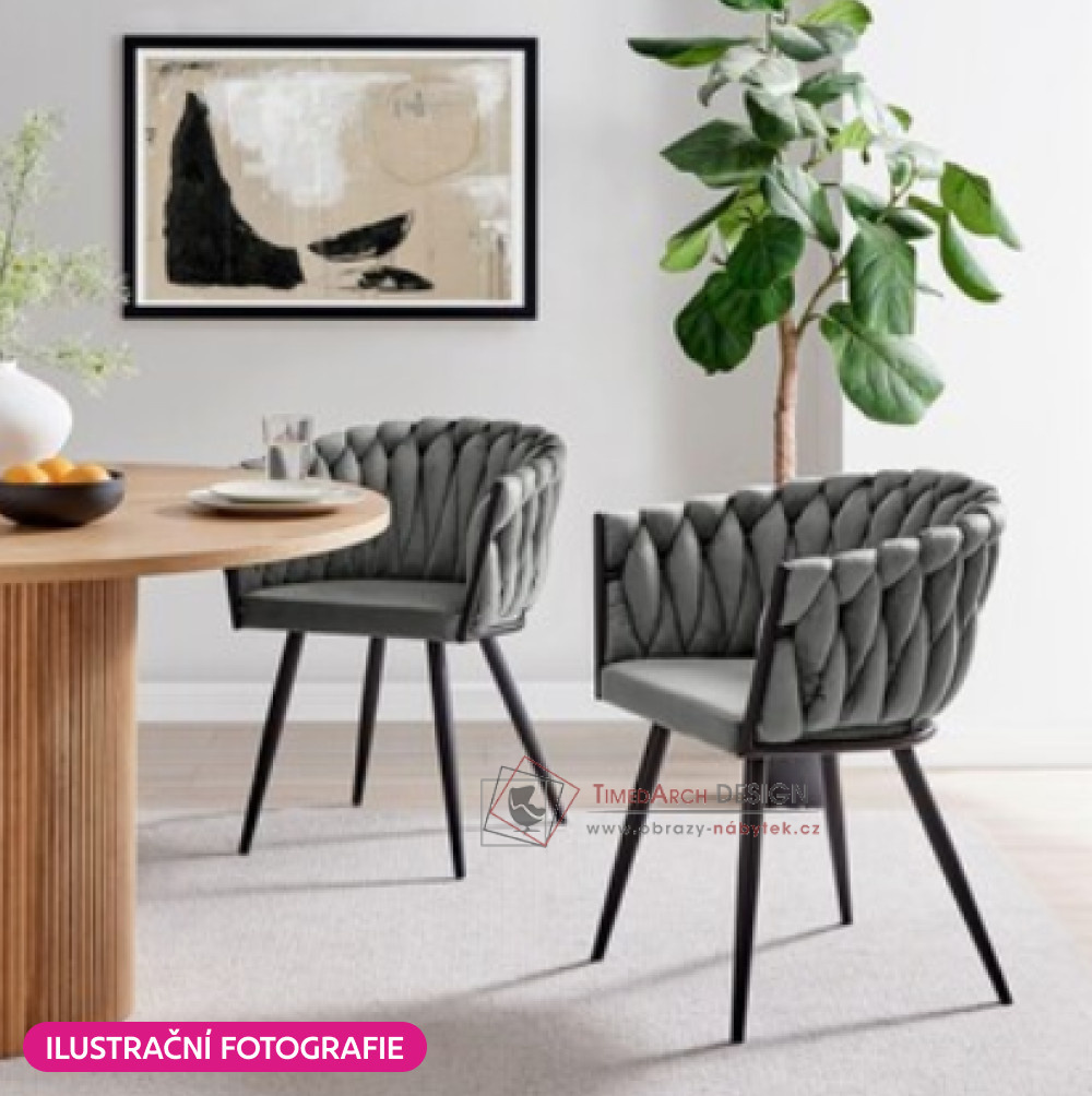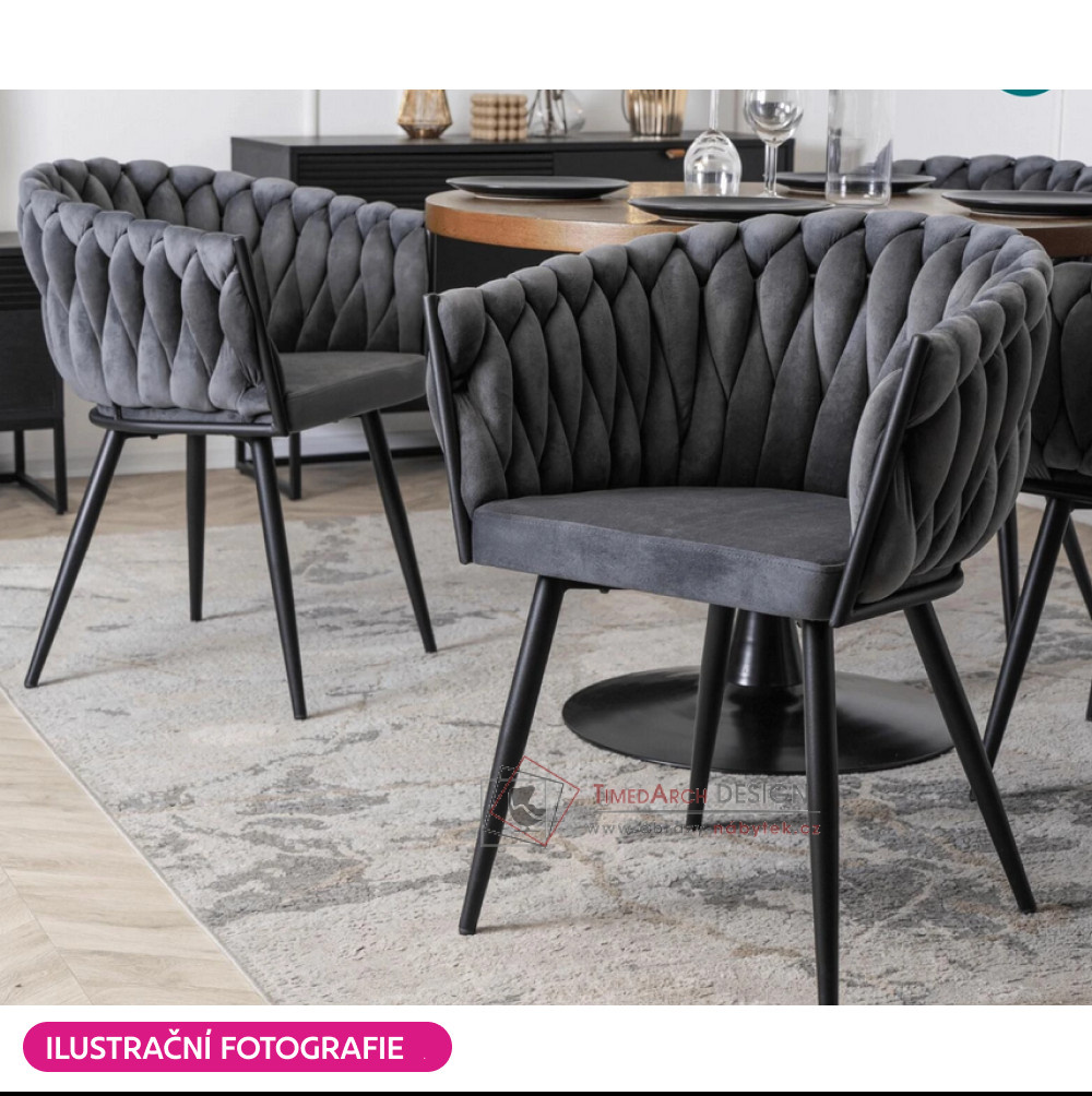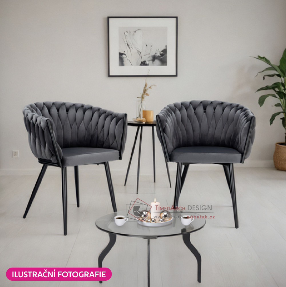 Křeslo je potaženo elegantním potahem vyrobeným z kvalitní sametové Velvet látky v provedení tmavě šedá . Stojí na čtyřech černých kovových nohách, které křeslu dodávají stabilitu. Zádová opěrka a opěrky na ruce jsou dekorativně prošívané, což působí velmi elegantně a honosně. Křeslo BLER upoutá vaši pozornost nejen designem, ale také detailním zpracováním.