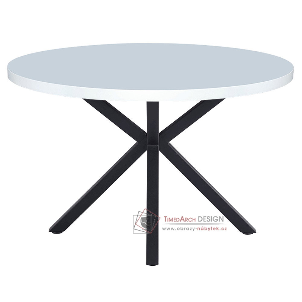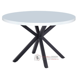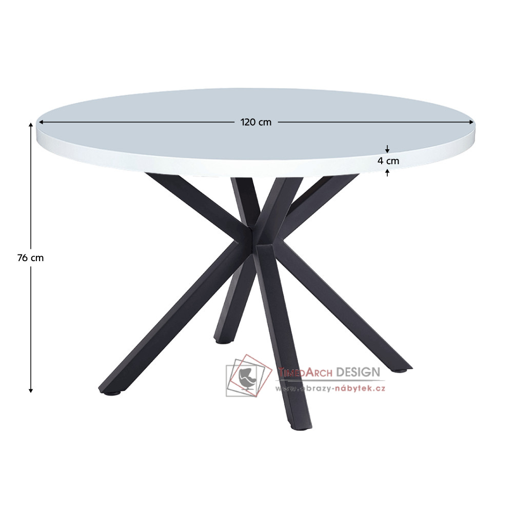 Charakteristický industriálním stylem, pro který je vlastní nedokonalý povrch, masivní kovová konstrukce a mohutný vzhled. Barevná kombinace je pastvou pro oči. Dodá vašemu interiéru šmrnc a ideální kontrast do každé místnosti. Sestává z barevné kombinace bílá na stolové desce v spojení s černými kovovými nohami. Ty dodávají stolu patřičnou stabilitu. U stolu se pohodlně posadí 4 lidé.