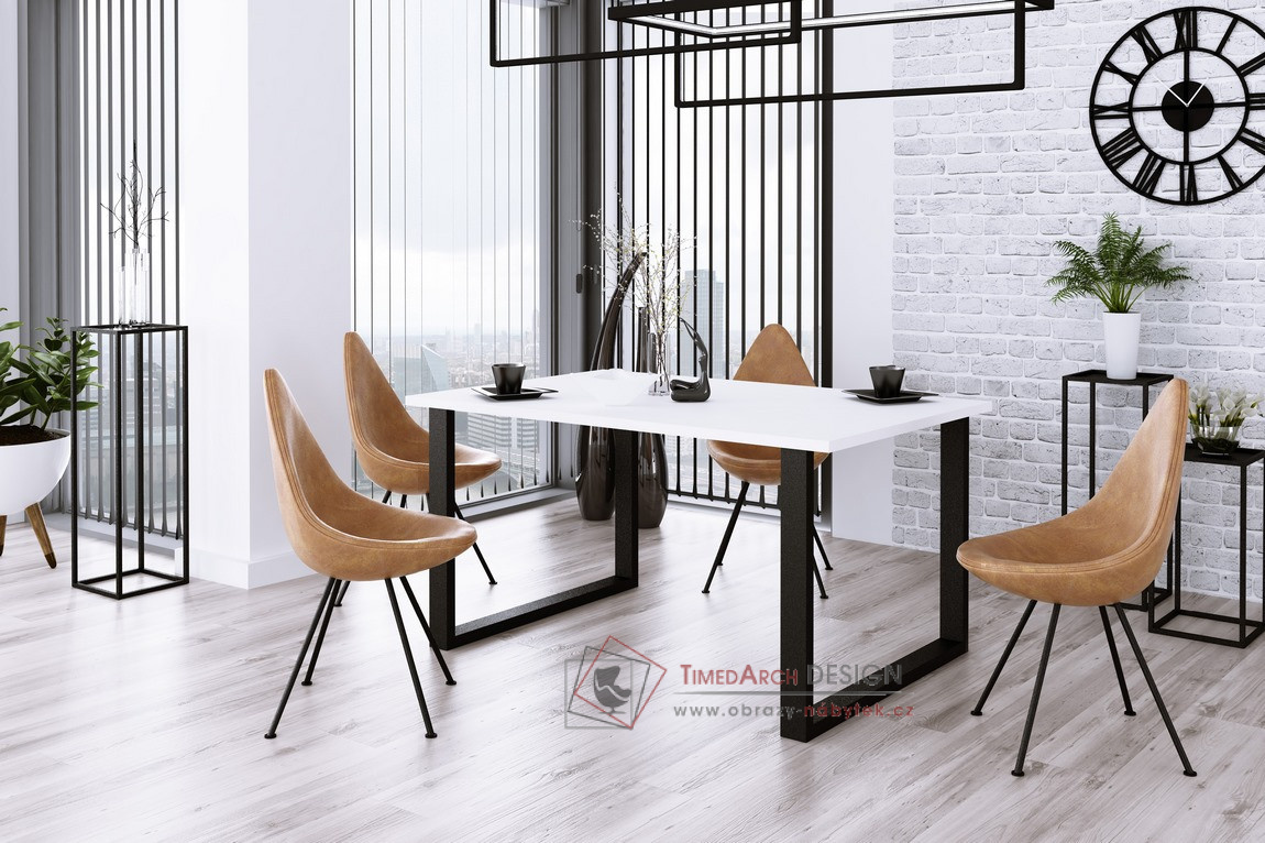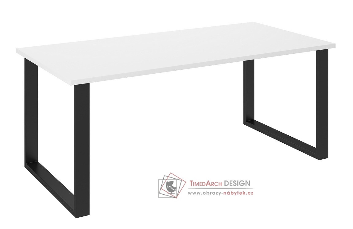 Stolová deska je vyrobena z laminované DTD bílé barvy o tl. 28mm, Kovová podnož je práškově lakovaná do černé barvy (profil 80x40 mm).