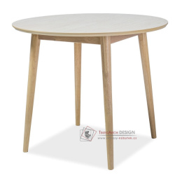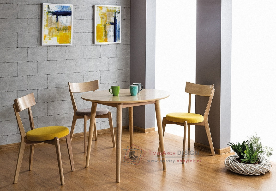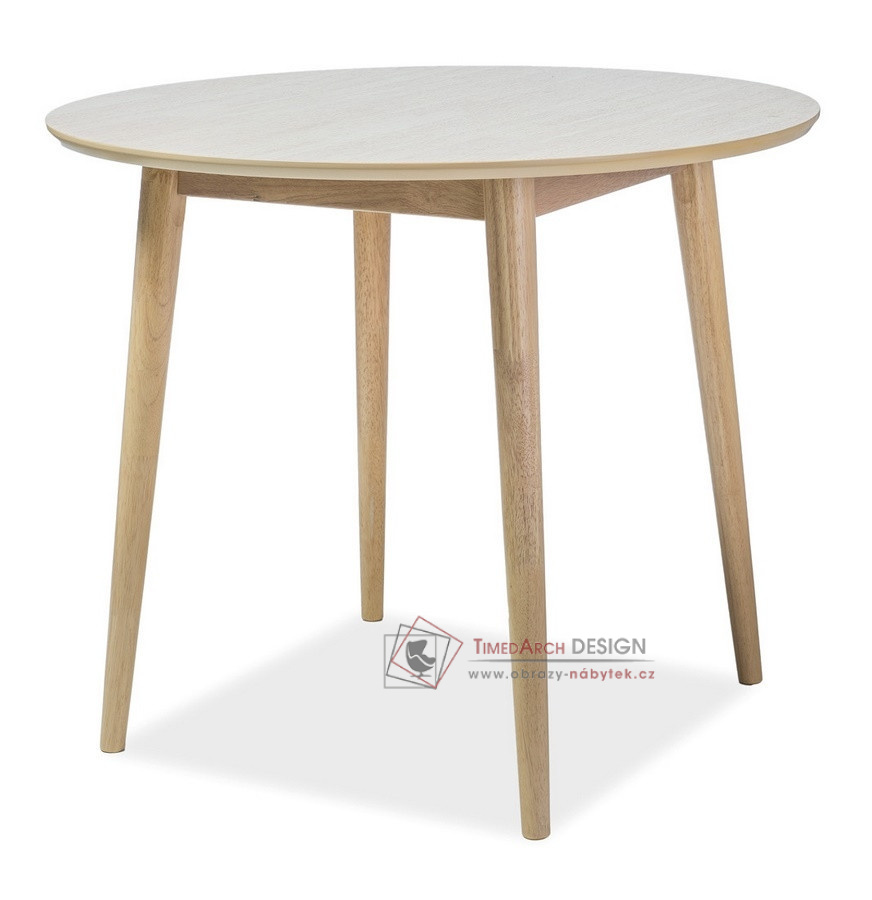 Kulatý jídelní stůl o pr. stolní desky 90cm NELSON na podnoži z bukového masívu, stolní deska z MDF, vše v barevném provedení dub.