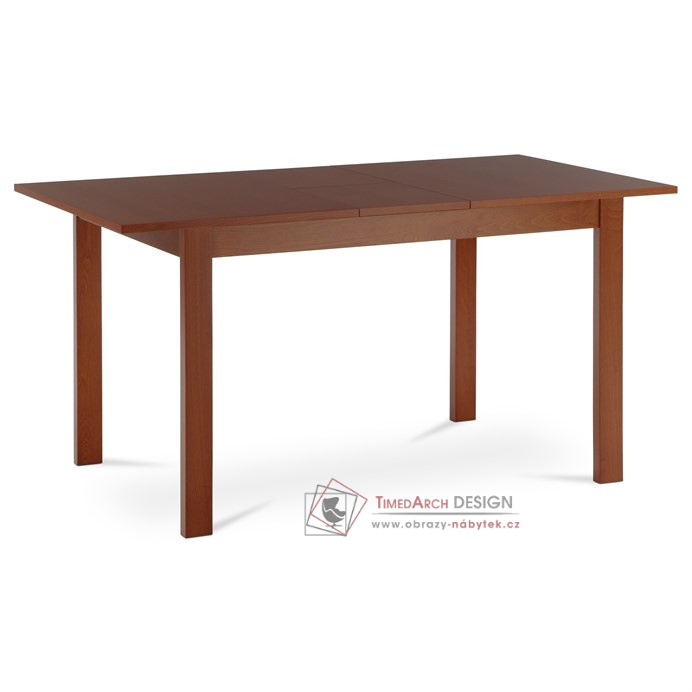 Stolní deska i vnitřní rozklad je z MDF desky oboustranně potažené pravovu bukovou dýhou. Nohy a luby jsou z masivního buku. Nohy jsou ve spodní části opatřeny plastovými kluzáky, zabraňující poškození podlahové krytiny. Moření je v odstínu tmavá třešeň, výška stolu je 74 cm. Mechanismus rozkladu je z kovových komponent. U stolu se roztahuje pouze deska, nohy jsou pevné a zůstávají ve své původní poloze. Vklad rozkladu je dělený u umístěný uprostřed stolu. Při složení je uložen pod deskou. Zajištění složené nebo rozložené desky je kovovými západkami. Ke stolu je možné umístit 4-6 židlí. Stůl se výborně hodí do moderních, ale i klasicky laděných jídelen, kuchyní i obývacích prostor. U židlí se již nemusím držet stereotypního názoru, že jsou vhodné jen ve stejném designu i barvě. Trendy uspěšně umožňují i použití židlí s kombinací plastu, kovu, látky či ekokůže. Vytvoření základní sestavy stolu a židlí tedy záleží jen na Vašem vkusu a náladě. Šíře vložené desky je 30 cm.