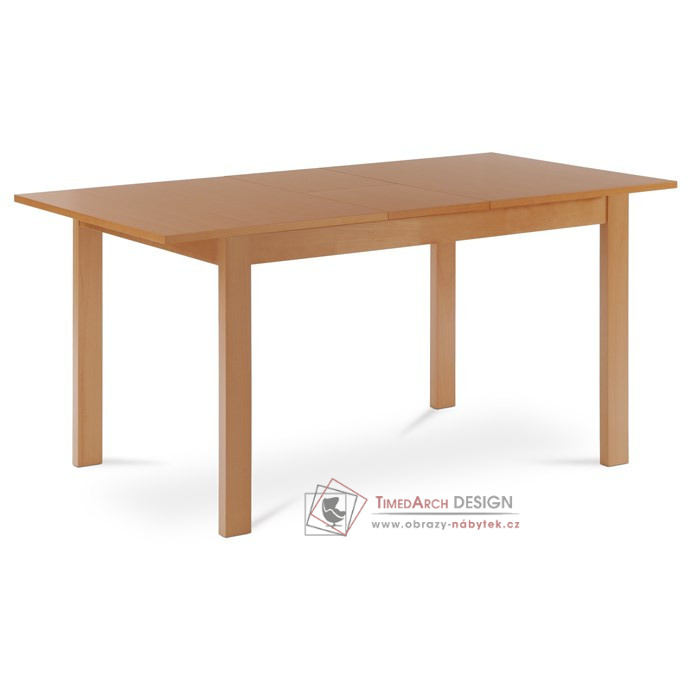 Stolní deska i vnitřní rozklad je z MDF desky oboustranně potažené pravovu bukovou dýhou. Nohy a luby jsou z masivního buku. Nohy jsou ve spodní části opatřeny plastovými kluzáky, zabraňující poškození podlahové krytiny. Moření je v odstínu tmavý dub, výška stolu je 74 cm. Mechanismus rozkladu je z kovových komponent. U stolu se roztahuje pouze deska, nohy jsou pevné a zůstávají ve své původní poloze. Vklad rozkladu je dělený u umístěný uprostřed stolu. Při složení je uložen pod deskou. Zajištění složené nebo rozložené desky je kovovými západkami. Ke stolu je možné umístit 4-6 židlí. Stůl se výborně hodí do moderních, ale i klasicky laděných jídelen, kuchyní i obývacích prostor. U židlí se již nemusím držet stereotypního názoru, že jsou vhodné jen ve stejném designu i barvě. Trendy uspěšně umožňují i použití židlí s kombinací plastu, kovu, látky či ekokůže. Vytvoření základní sestavy stolu a židlí tedy záleží jen na Vašem vkusu a náladě. Šíře vložené desky je 30 cm.