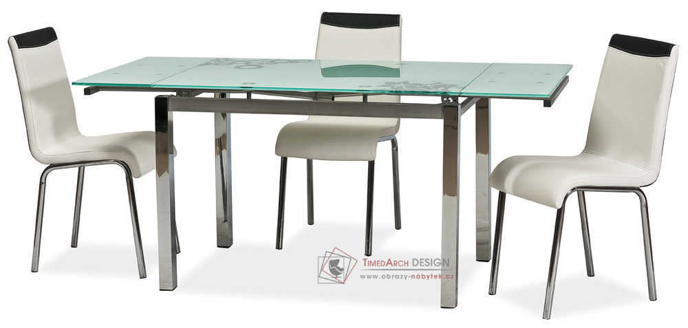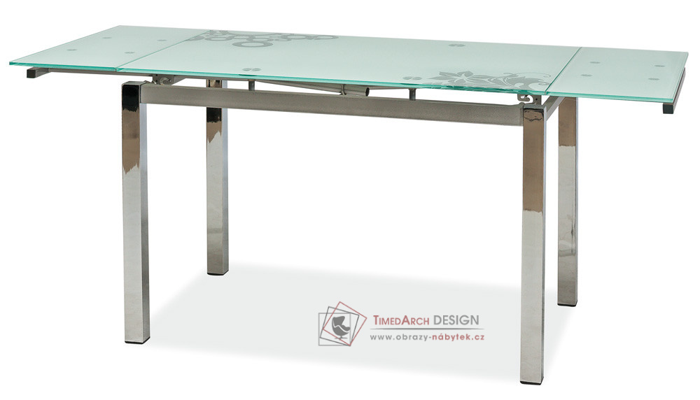 GD-017, jídelní stůl rozkládací, chrom / bílé sklo