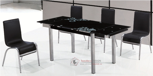 GD-017, jídelní stůl rozkládací, chrom / černé sklo
