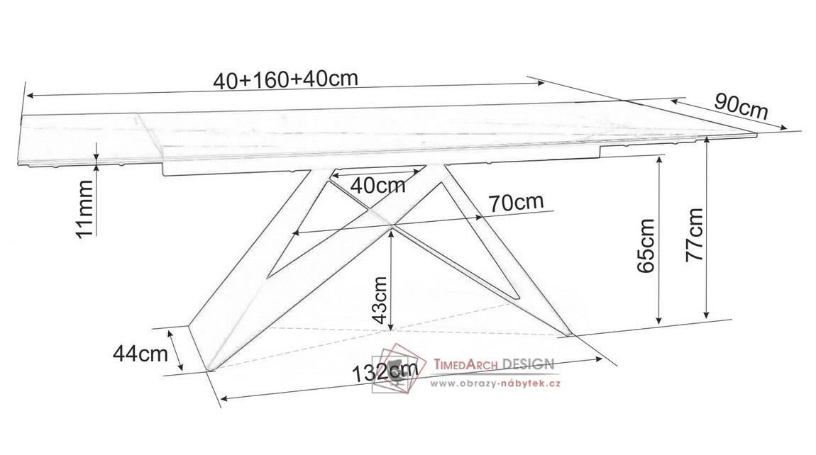 Rozměr stolní desky před rozložením je 90x160 cm, po rozložení 90x240 cm. Stůl je určen až pro 8 osob.