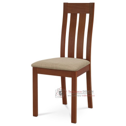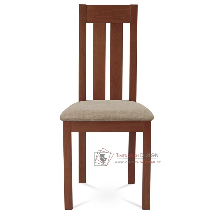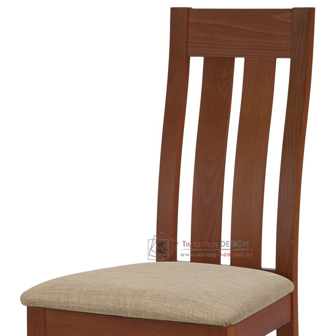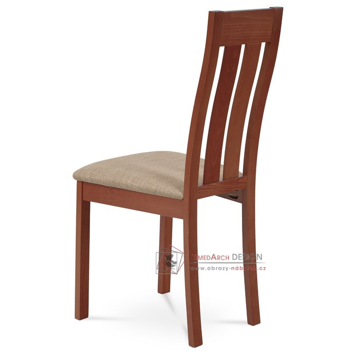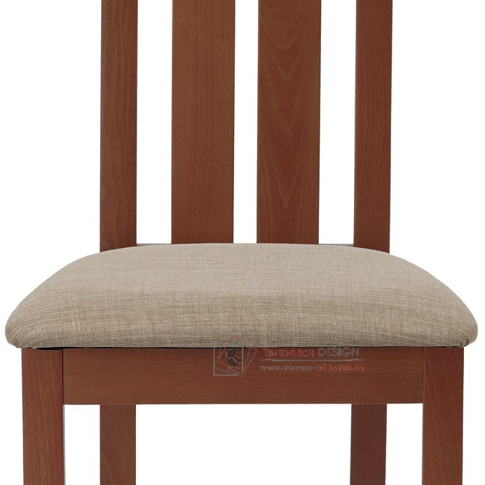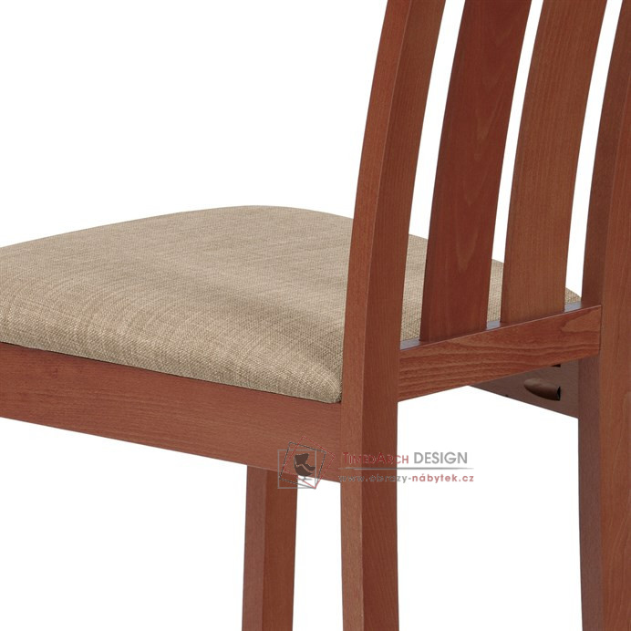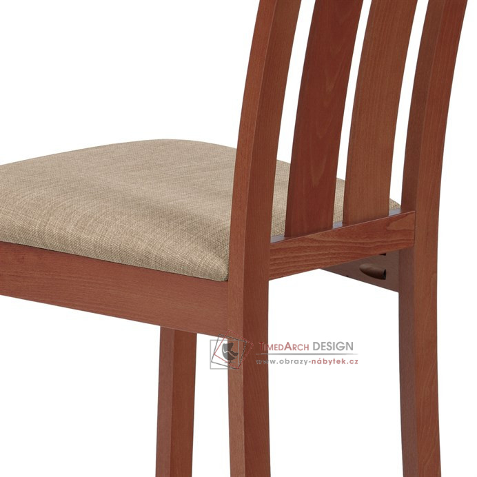 Elegantní jídelní židle vyrobená z masivního dřeva namořená do barvy třešeň, potah je v béžové barvě.