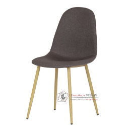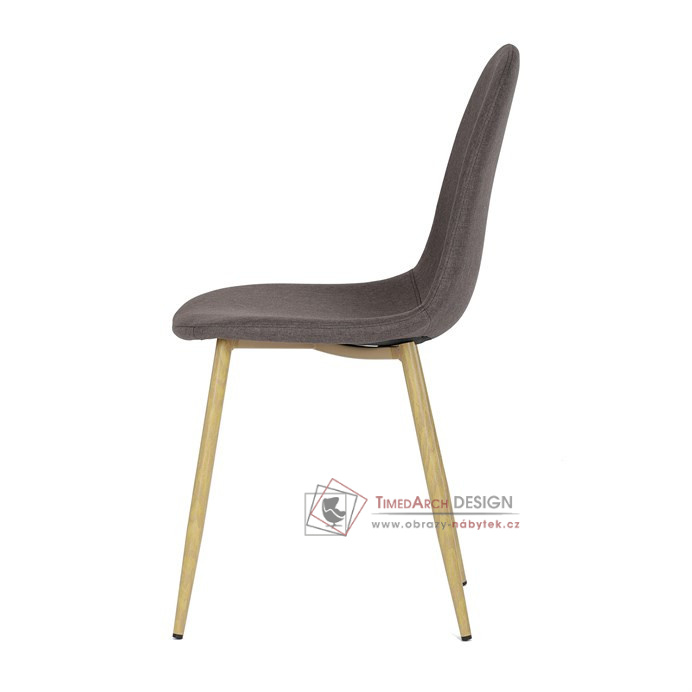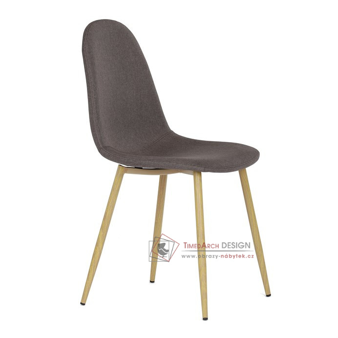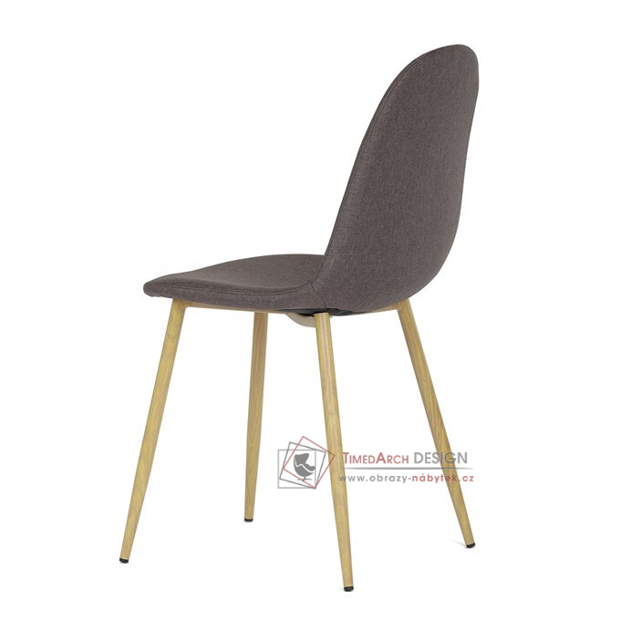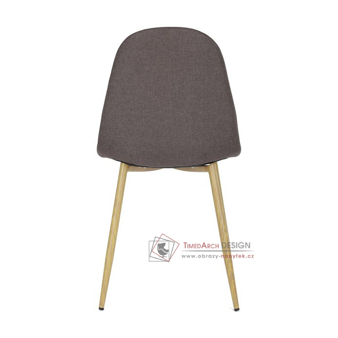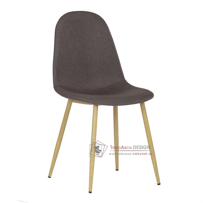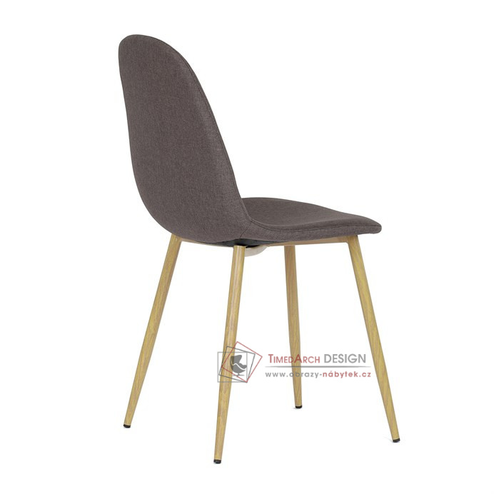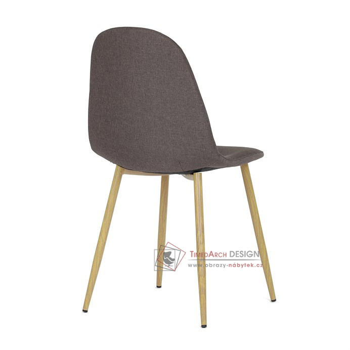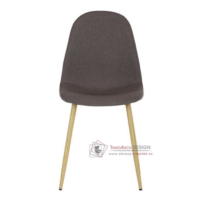 Sedák a opěrák židle je očalouněný látkou hnědé barvy.