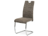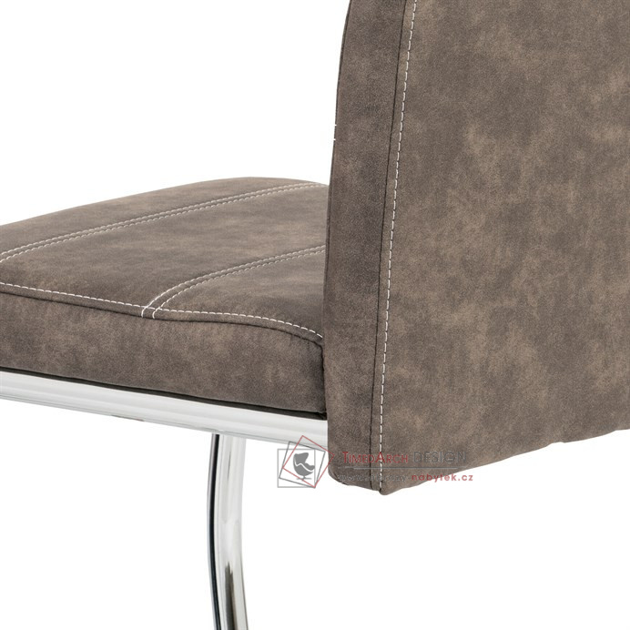 Moderní jídelní židle je čalouněná příjemnou krémovou látkou „COWBOY“ imitující broušenou kůži s dekorativním bílým prošitím sedáku i opěráku.