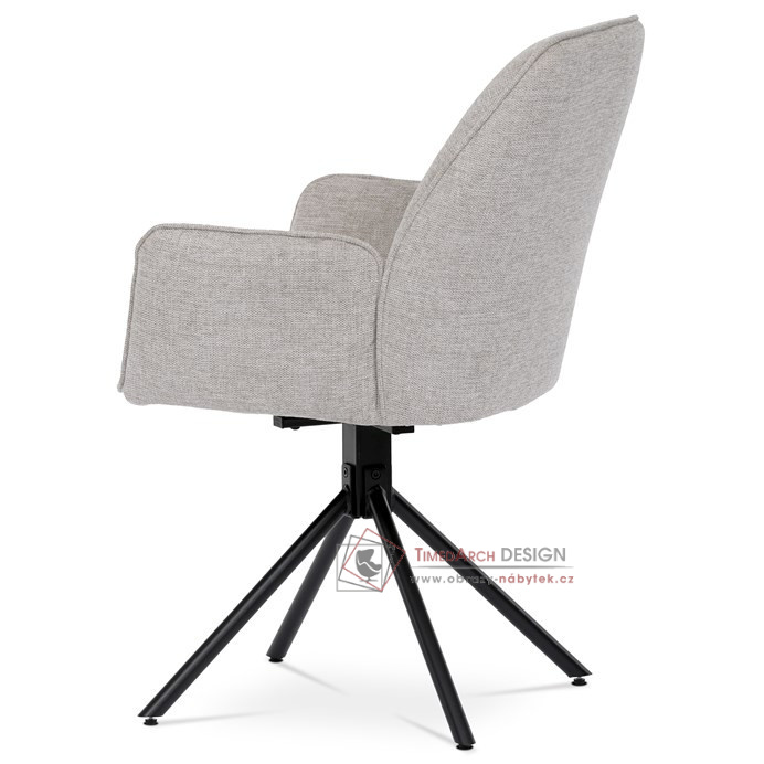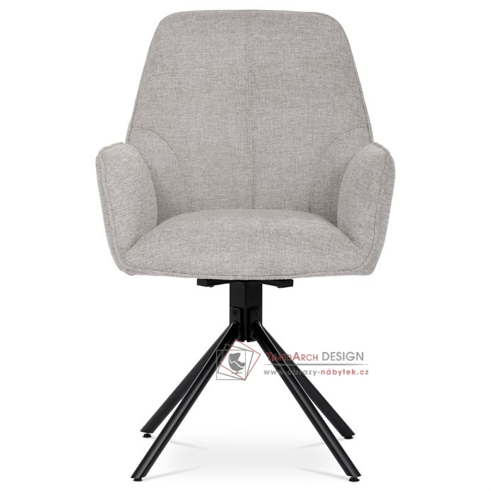 Zádová opěrka ozdobně prošitá, šev v barvě potahového materiálu. Odlehčené kovové podnoží s práškovým nástřikem v matné černé barvě vycházející z centrálního kovového upnutí. Sedák je otočný o 180° s tvarovou pamětí.