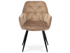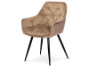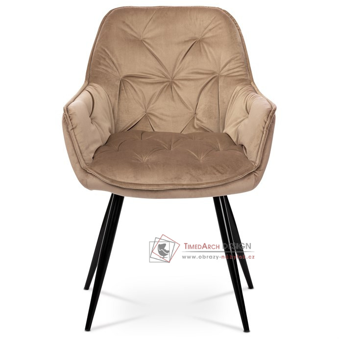 Skořepina sedáku a opěráku má potah z kvalitní látky v trendy cappuccino odstínu sametu. Polstrování je z PU pěny. Velmi dekorativním prvkem je výrazné masivní čtvercové prošití sedacích částí v barvě potahu a paspule po obvodu celé skořepiny. Vybraná látka se také velmi dobře čistí. Stabilitu židle zajišťují čtyři kónické kovové nohy s kvalitním práškovým nástřikem v černé matné barvě. Ukončené jsou černými plastovými kluzáky, zabraňující poškození tvrdých povrchů podlah. Tato provedení produkují z tohoto modelu židle skvělou volbu pro zařízení obývacích či jídelních, ale také zasedacích místností. Nosnost židle je 110 kg.