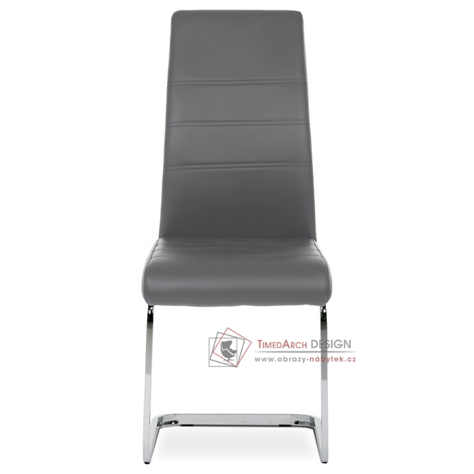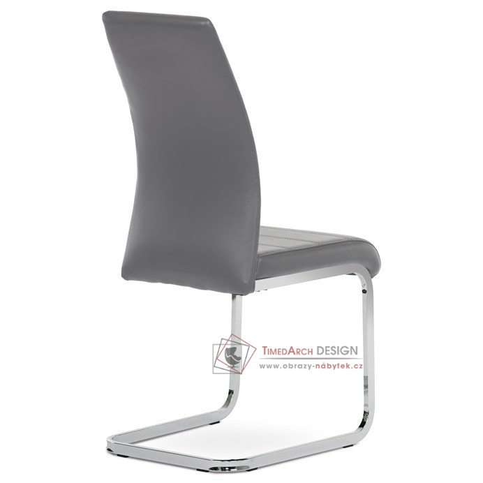 Potah z šedé ekokůže v kombinaci s chromovanou kovovou podnoží ve tvaru pohupující konstrukce přináší nejen atraktivní vzhled, ale také vysoký komfort sezení. Pohodlné polstrování z PU pěny zajišťuje měkký posed a dlouhou životnost. Židle je snadno udržovatelná díky odolnému materiálu a hodí se jak do moderní jídelny, tak i do komerčních prostor. S touto židlí vnese značka Autronic do každého prostoru styl a funkčnost v dokonalém spojení.