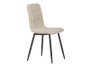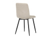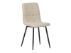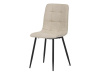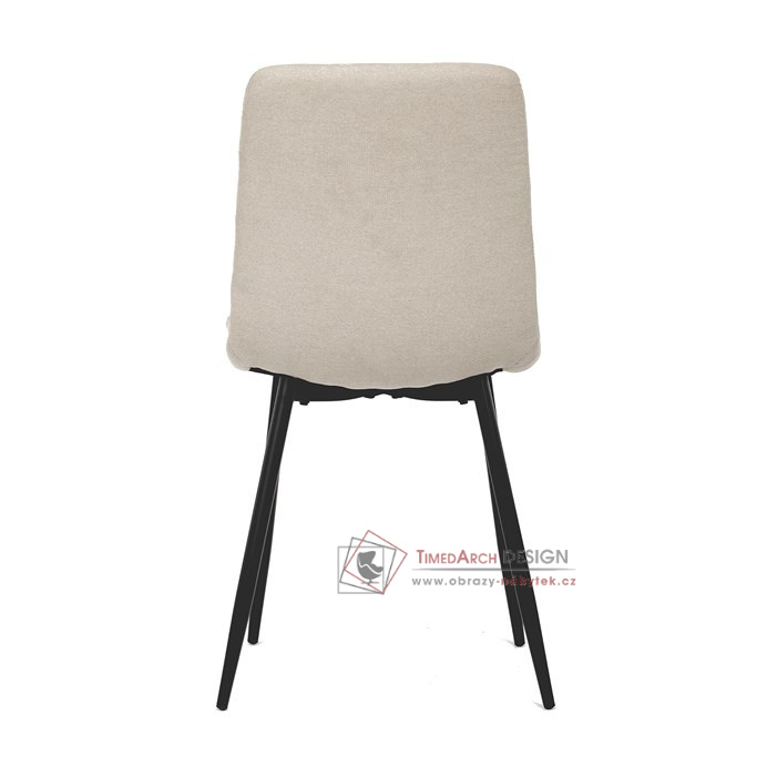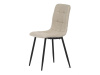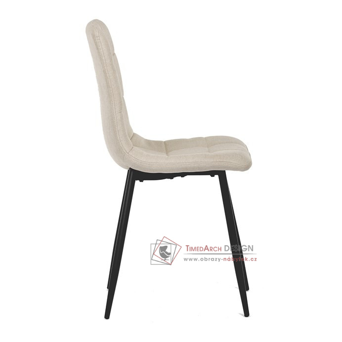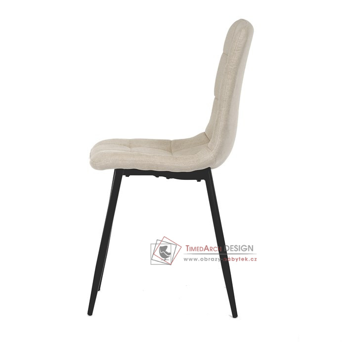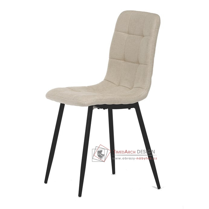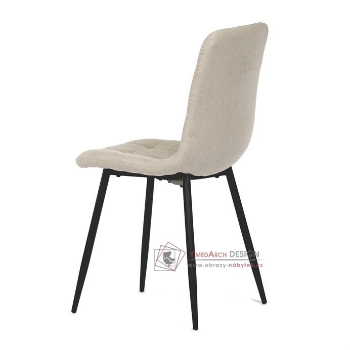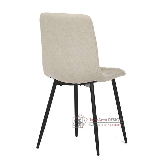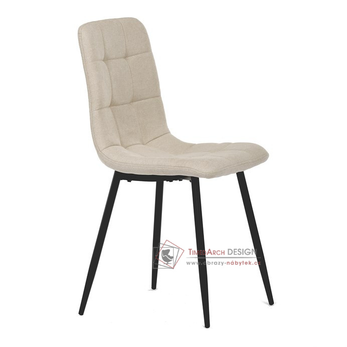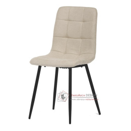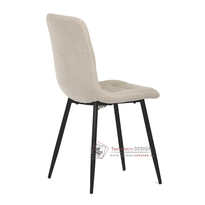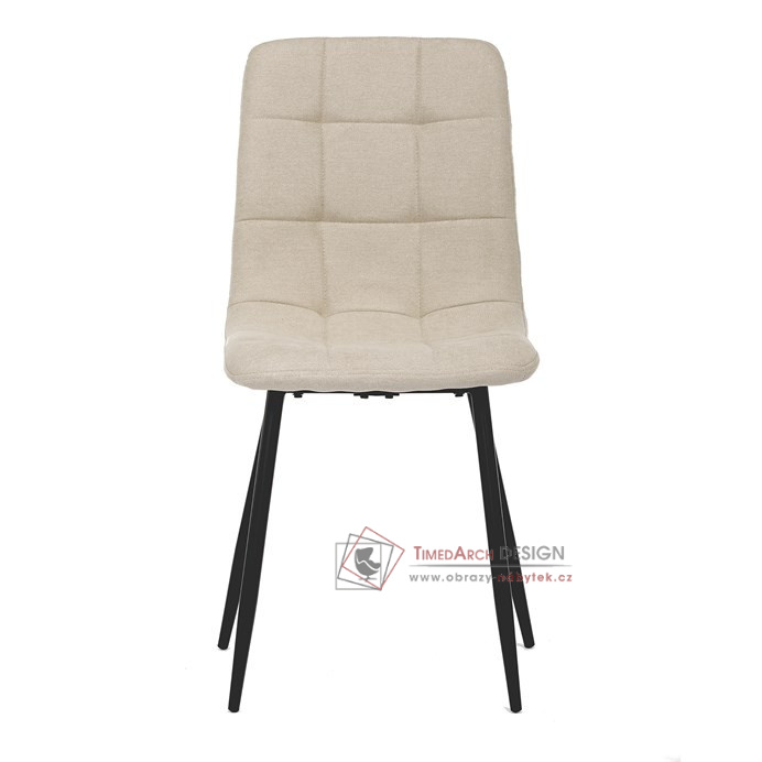 Potah je z jemně hrubé látky v klasickém krémovém odstínu. Velmi dekorativní a výrazné je čtvercové prošívání čelních ploch sedáku i opěradla s čalounickými vtahy. Polstrování je z kvalitní PU pěny. Stabilitu židle zajišťují čtyři kónické kovové nohy s kvalitním práškovým nástřikem v černé matné barvě. Ukončené jsou černými plastovými kluzáky, zabraňující poškození tvrdých povrchů podlah. Nohy jsou kruhového průřezu o nejvyšším průměru 2,5 cm. Tento minimalistický a strohý design jídelních židlí je velmi oblíben pro svoji nadčasovost i pohodlí, které poskytuje a také variabilitu. Můžete ji bez obav použít k široké škále stolů v různých materiálech i provedeních. Maximální nosnost židle je až 120 kg. Základní rozměry – celková šíře 44 cm, celková hloubka 52 cm, celková výška 91 cm a výška sedu 46 cm. Montáž není složitá, zvládne ji i méně zručný nový majitel této židle.