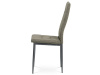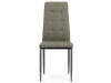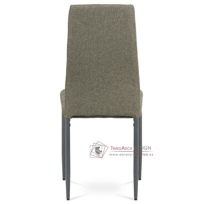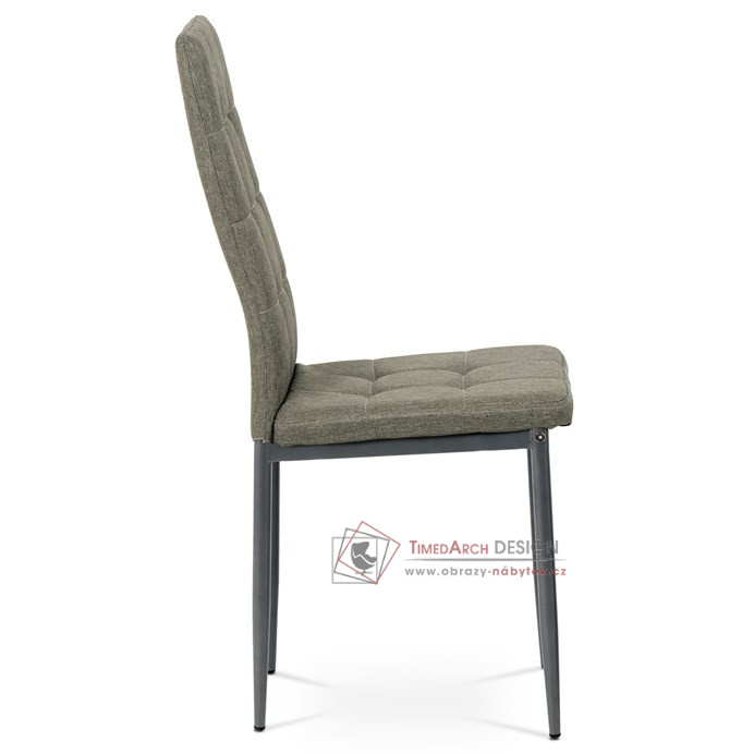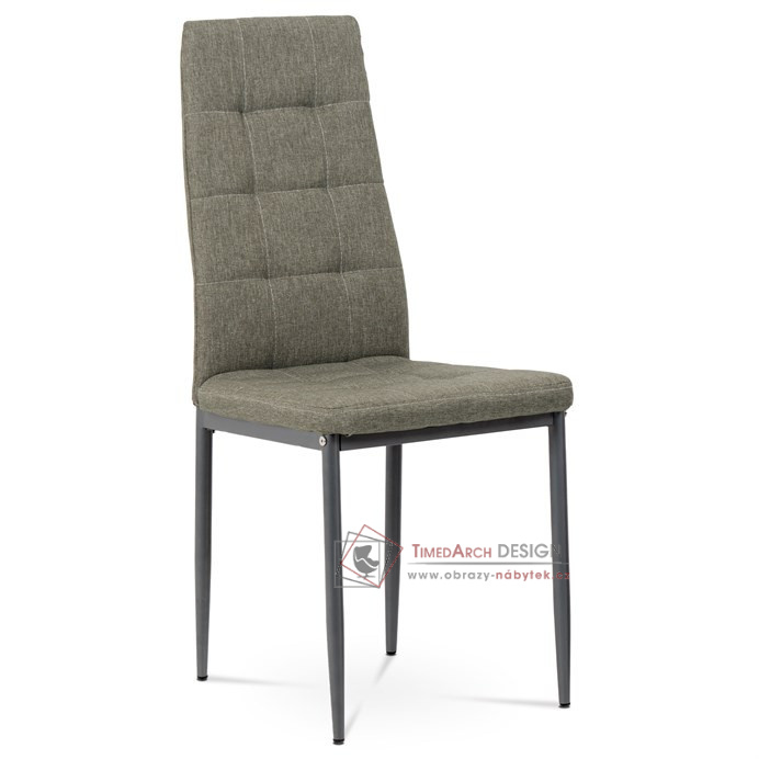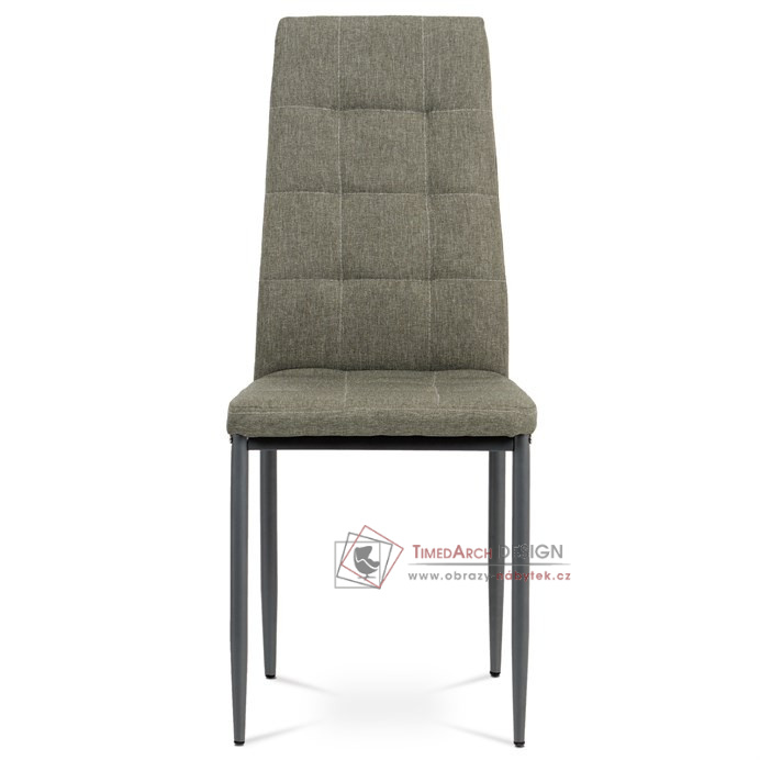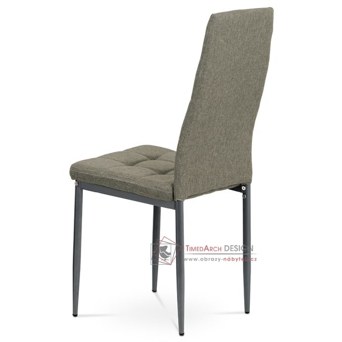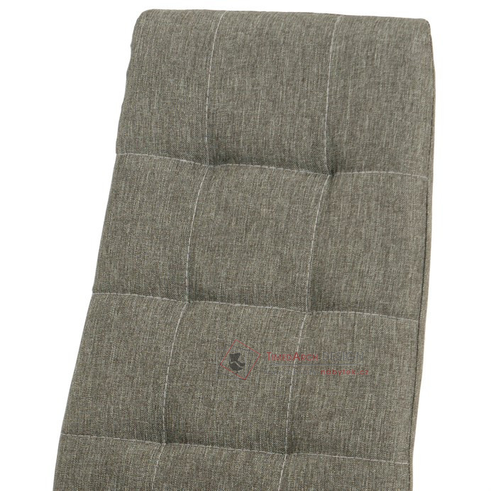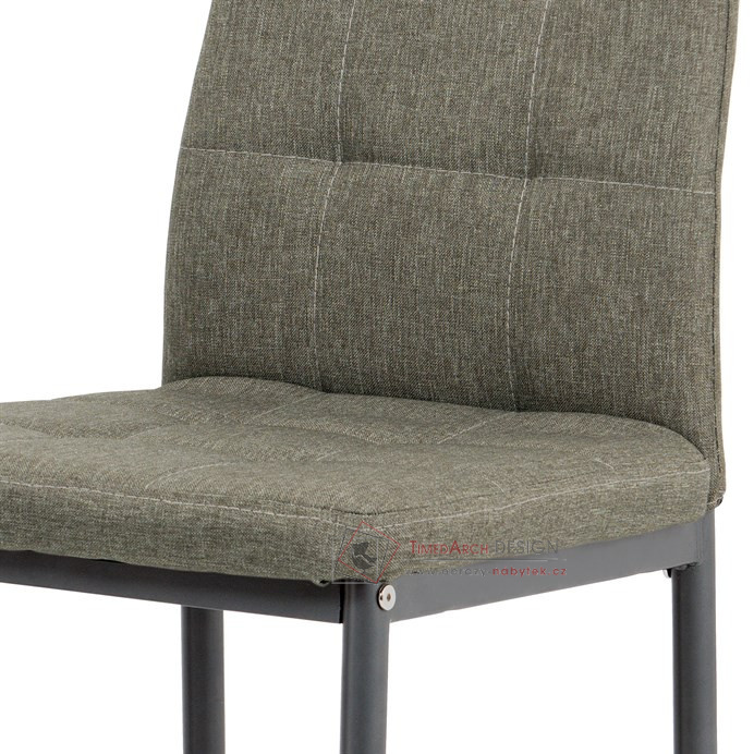 Je potažena středně hrubou lanýžovou látkou s výrazným čtvercovým prošitím s čalounickými vtahy sedáku i opěráku. Polstrování je z kvalitní PU pěny. Čtyřnohá podnož je kovová, s povrchovou úpravou antracitovou matnou práškovou barvou. Nohy jsou kruhového průřezu a kónické, na koncích jsou opatřeny černými plastovými kluzáky, které minimalizují nebezpečí poškození povrchu podlahy na minimum. Nosnost židle je až 110 kg. Tato židle najde platné využití v prostorách domácí jídelny či kuchyně.
