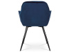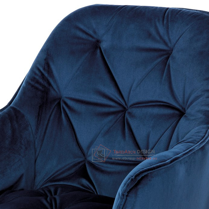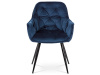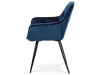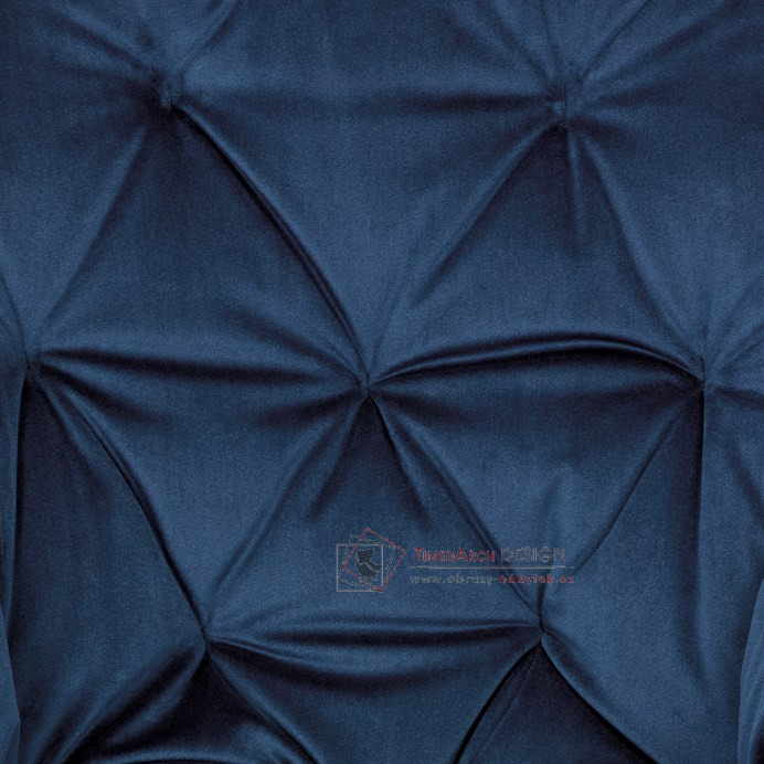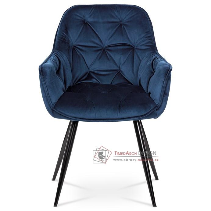 Skořepina sedáku a opěráku má potah z kvalitní látky v trendy korálově modrém odstínu sametu. Polstrování je z PU pěny. Velmi dekorativním prvkem je výrazné masivní čtvercové prošití sedacích částí v barvě potahu a paspule po obvodu celé skořepiny. Vybraná látka se také velmi dobře čistí. Stabilitu židle zajišťují čtyři kónické kovové nohy s kvalitním práškovým nástřikem v černé matné barvě. Ukončené jsou černými plastovými kluzáky, zabraňující poškození tvrdých povrchů podlah. Tato provedení produkují z tohoto modelu židle skvělou volbu pro zařízení obývacích či jídelních, ale také zasedacích místností. Nosnost židle je 110 kg.