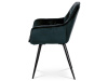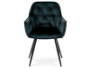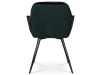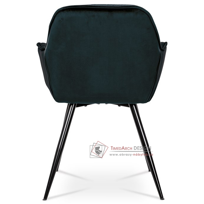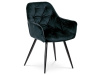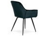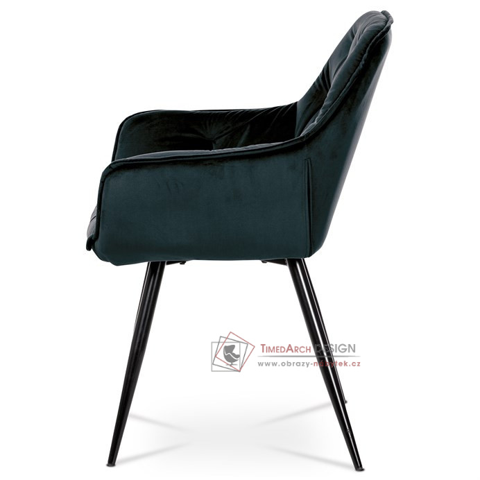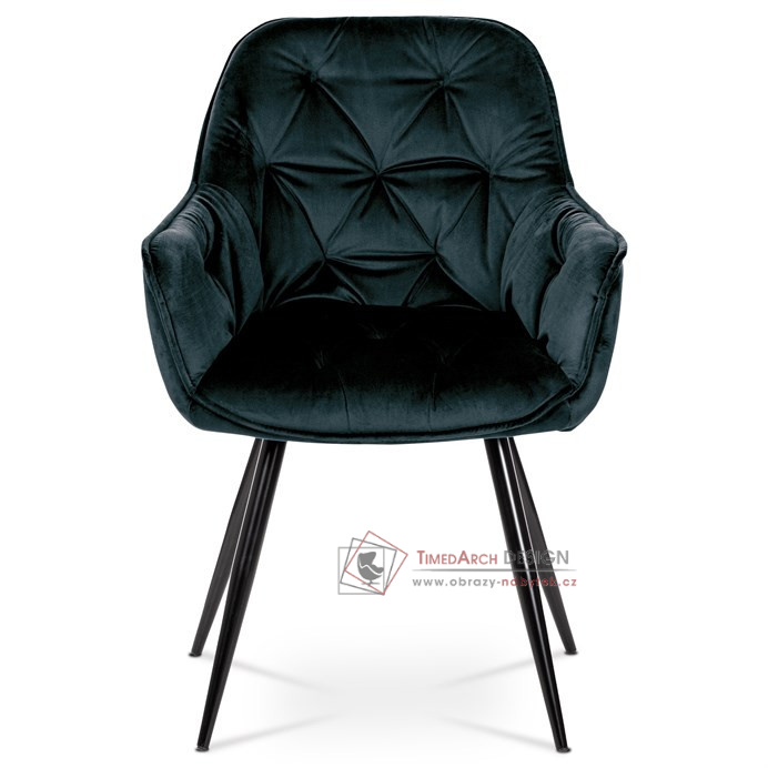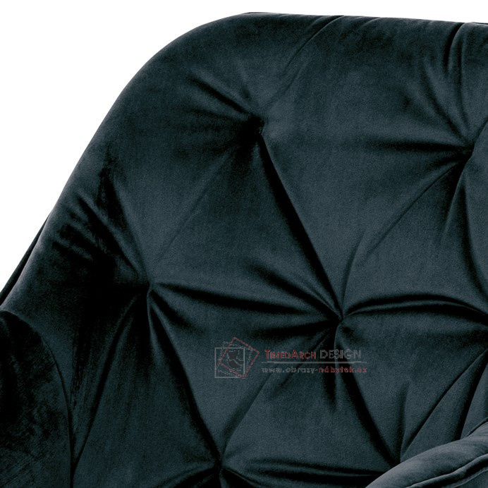 Skořepina sedáku a opěráku má potah z kvalitní látky ve velmi žádaném černém sametu, s trendy temným nádechem modrého inkoustu, který povyšuje tuto židli na vyšší estetickou úroveň. Polstrování je z PU pěny. Velmi dekorativním prvkem je výrazné masivní čtvercové prošití sedacích částí v barvě potahu a paspule po obvodu celé skořepiny. Vybraná látka se také velmi dobře čistí. Stabilitu židle zajišťují čtyři kónické kovové nohy s kvalitním práškovým nástřikem v černé matné barvě. Ukončené jsou černými plastovými kluzáky, zabraňující poškození tvrdých povrchů podlah. Tato provedení produkují z tohoto modelu židle skvělou volbu pro zařízení obývacích či jídelních, ale také zasedacích místností. Nosnost židle je 110 kg.