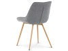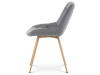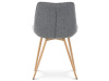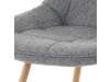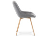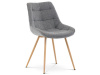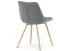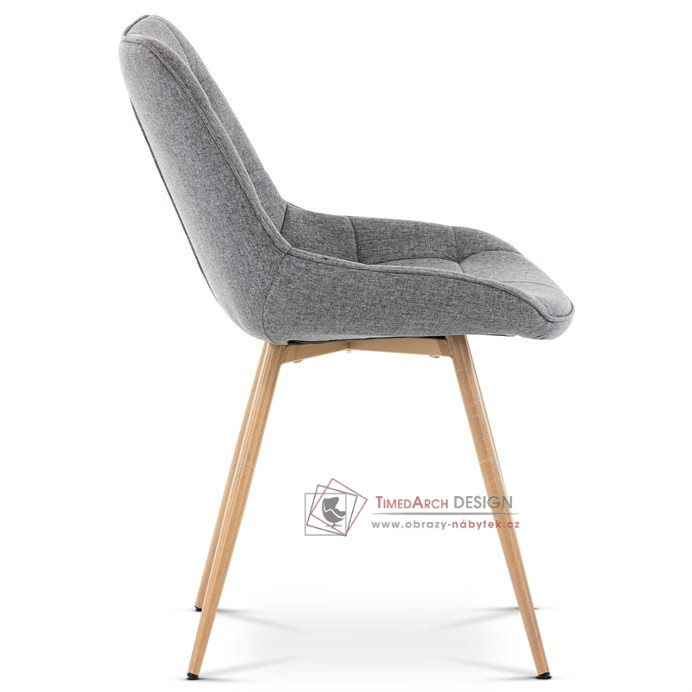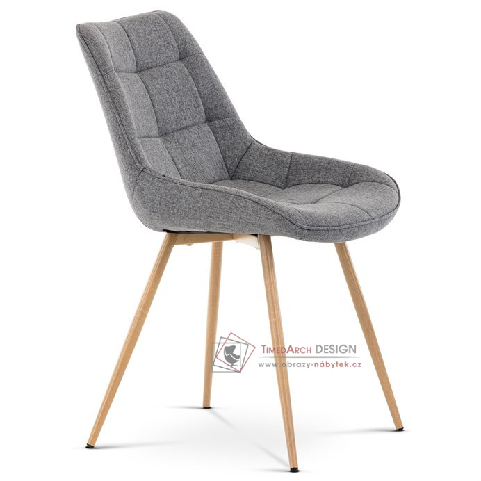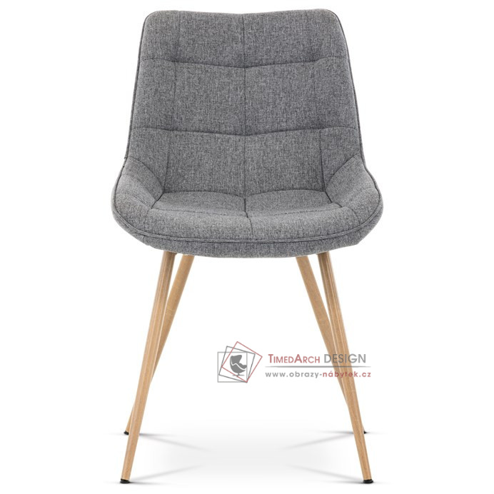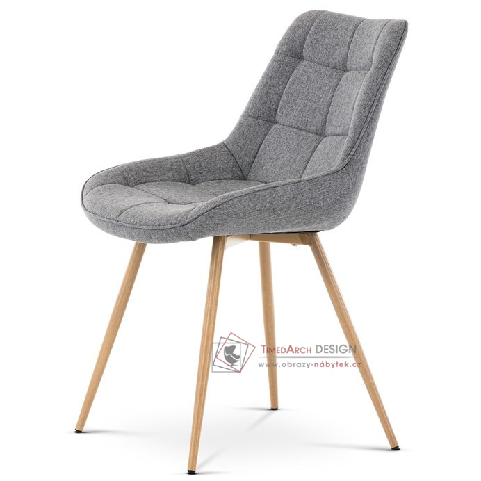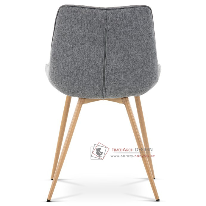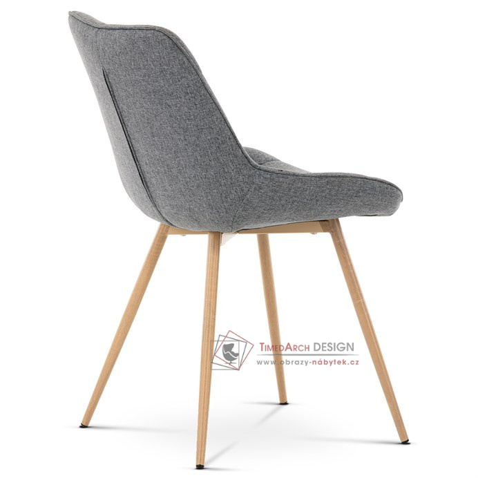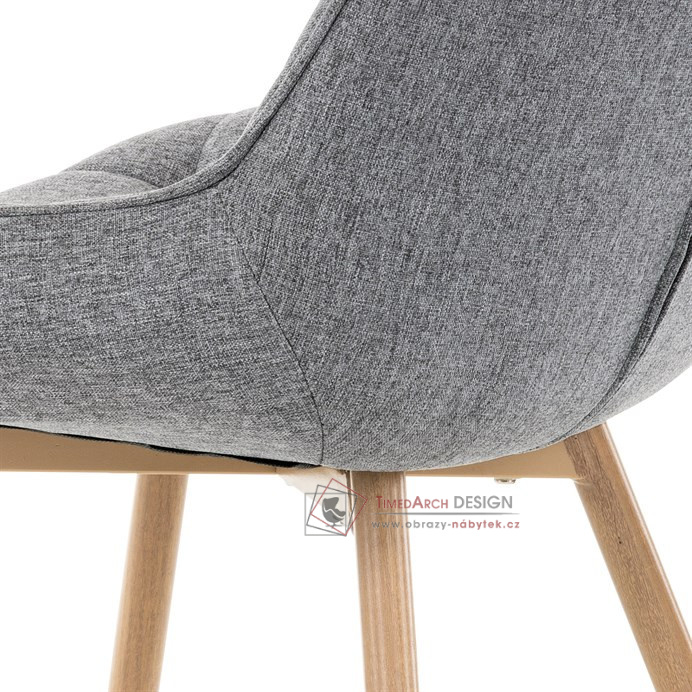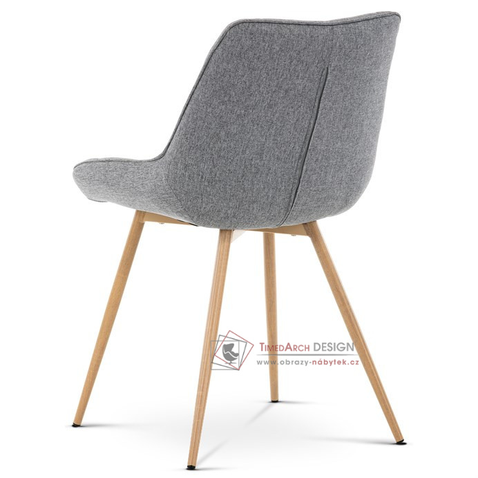 Sedací část je zaoblená a má vyvýšené boky, plynule přecházející do opěráku. Polstrování je z kvalitní PU pěny. Čtyřnohá kovová podnož je v 3D dekoru dub. Nohy jsou kruhového průřezu a kónické, ukončené černými platovými kluzáky. Celá podnož je svařená a dodávána jako celek, nehrozí tedy občasné dotahování šroubů jako u podnože šroubované.Toto vše působí nejen jako stylový designový prvek, ale dělá židli velmi pevnou, pohodlnou a praktickou na kratší i delší posezení. Svým provedením ve Skandinávském stylu a decentní barevností se židle hodí nejen k jídelnímu stolu, ale i jako součást pracoven či konferenčních místností.