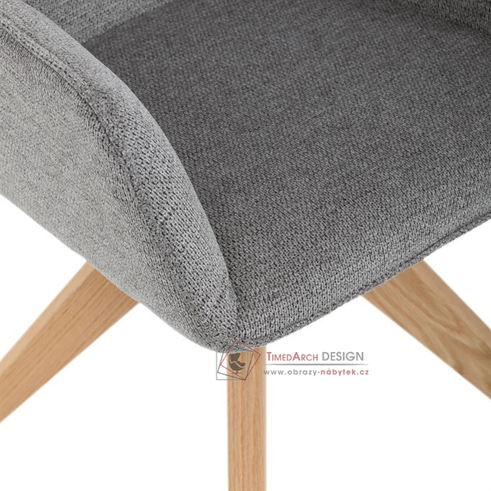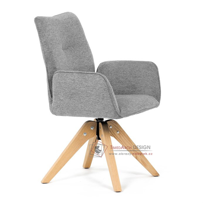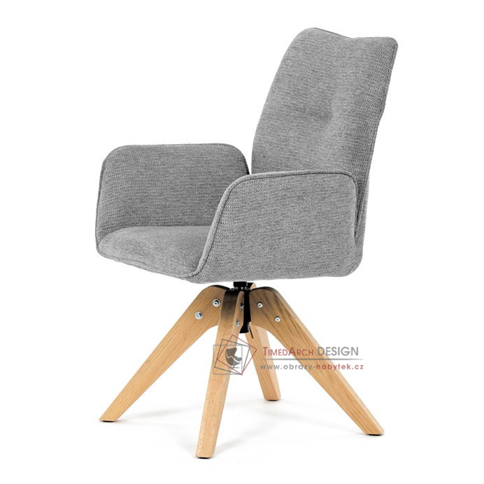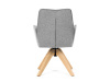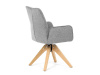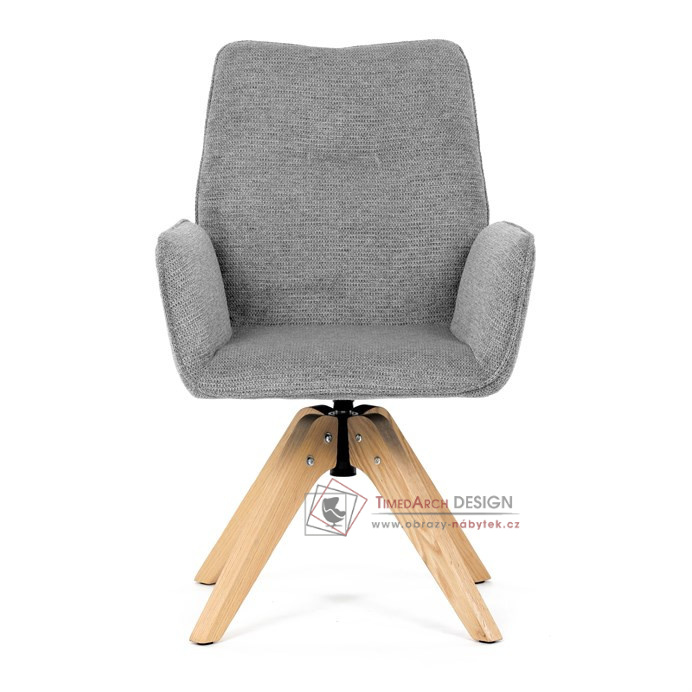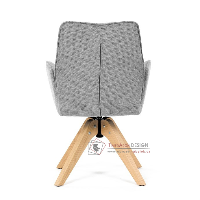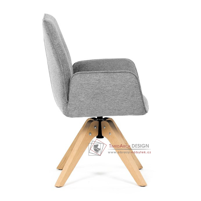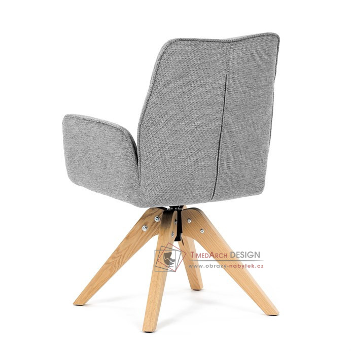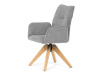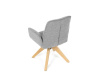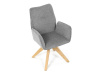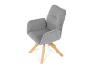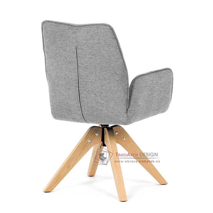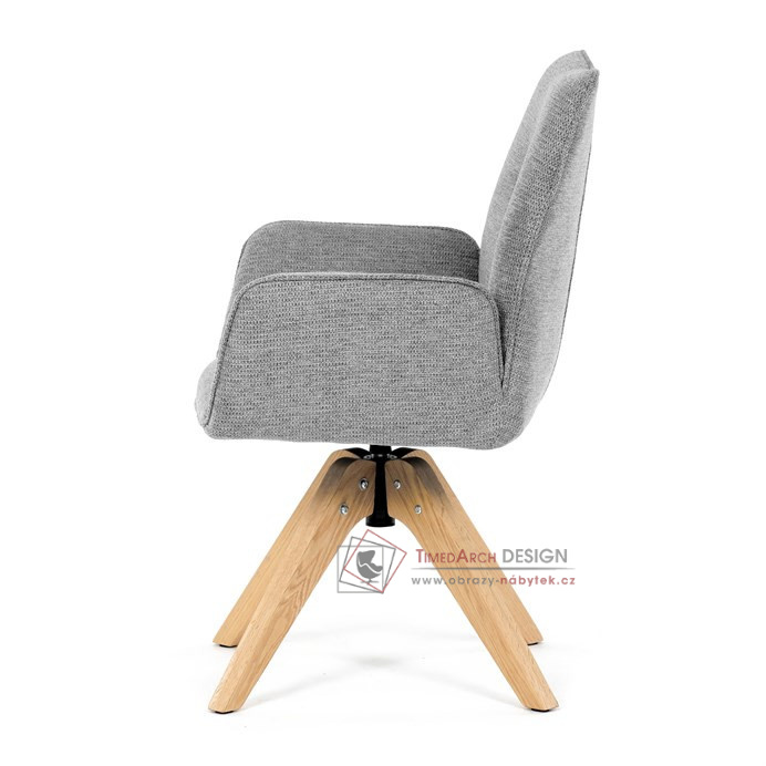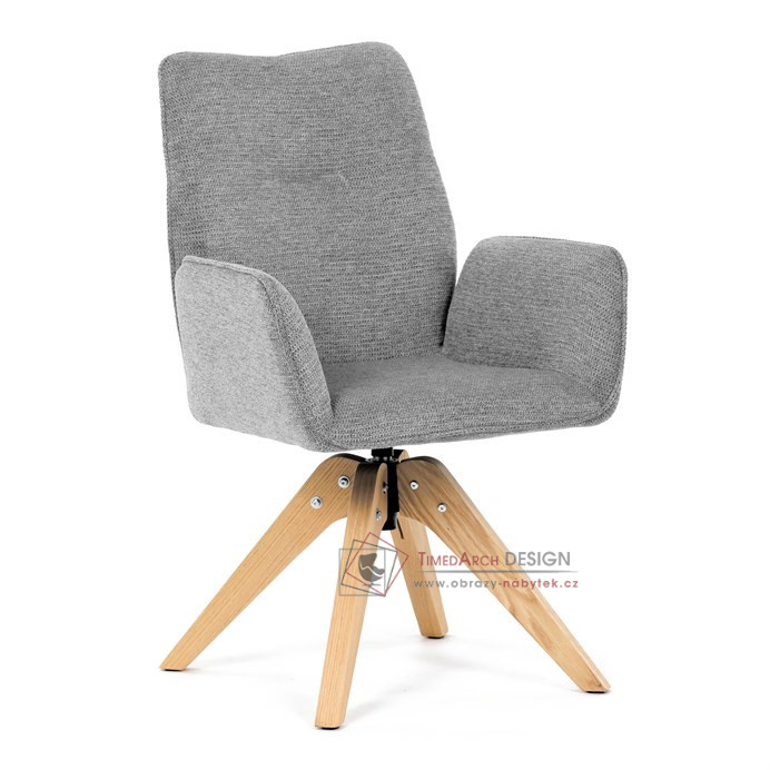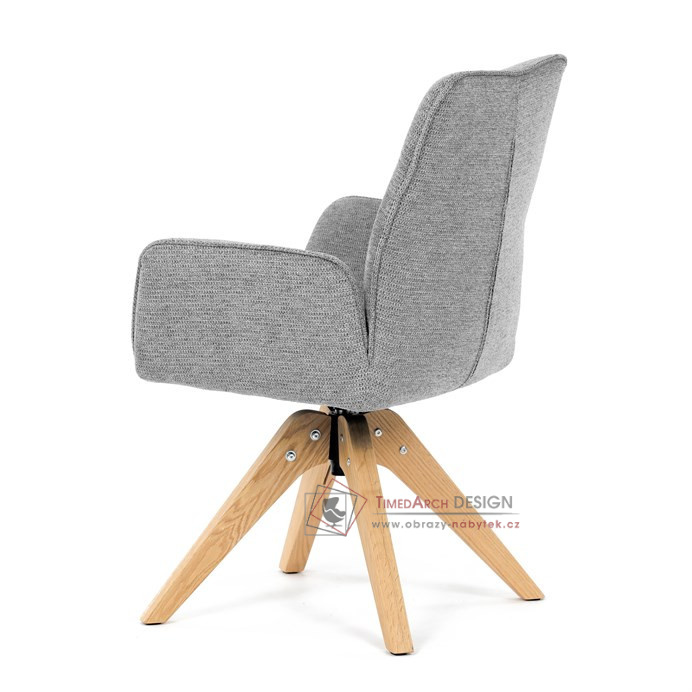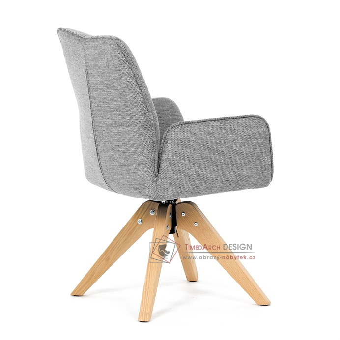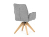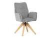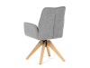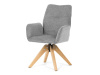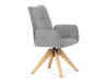 Její pohodlný sedák i opěrák jsou čalouněny voděodolnou látkou v příjemném světle šedém odstínu, což z ní činí skvělý doplněk do jakéhokoliv interiéru. Masivní dřevěné nohy v přírodní barvě dodávají židli stabilitu a odolnost, zatímco otočný mechanismus s funkcí 360° přináší uživatelský komfort. Tato jídelní židle je ideální nejen do domácností, ale také do kaváren či restaurací, kde je požadován moderní a funkční nábytek.