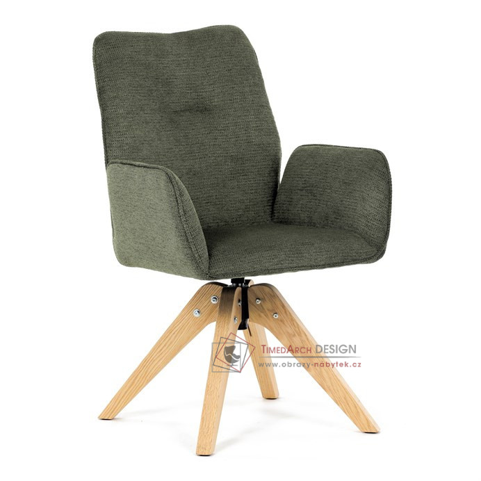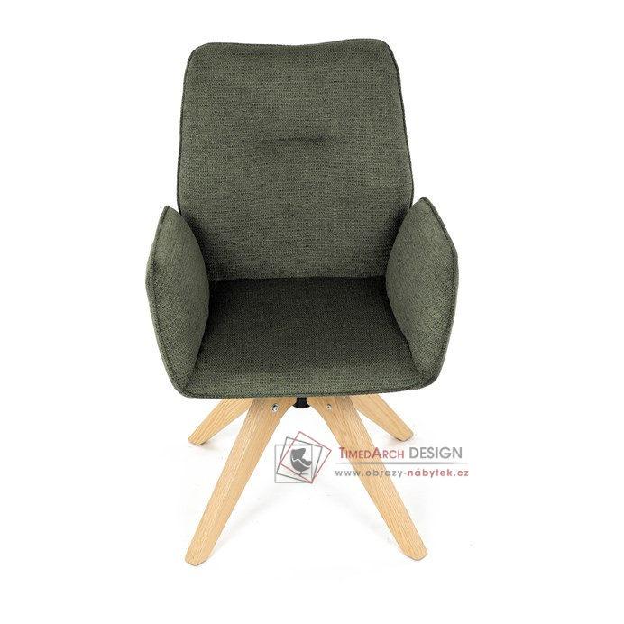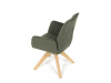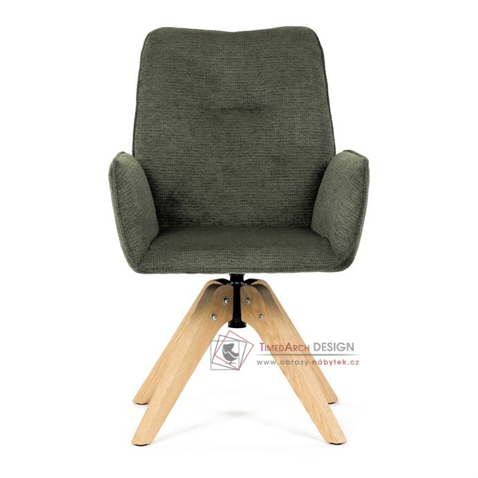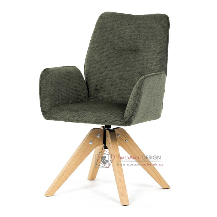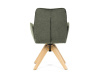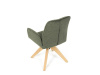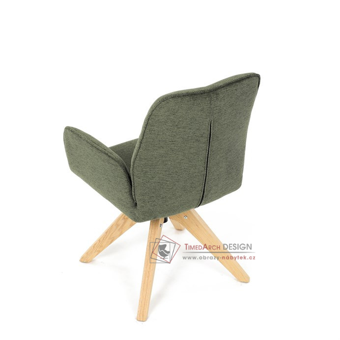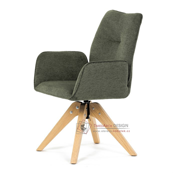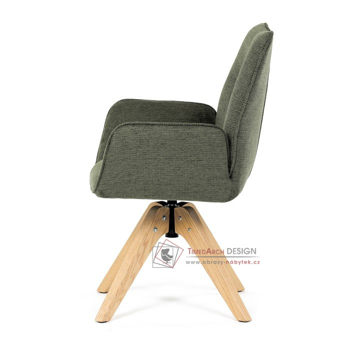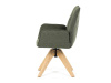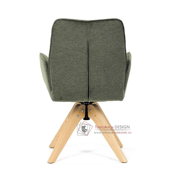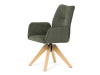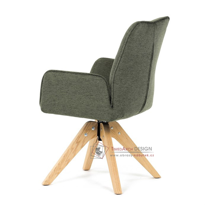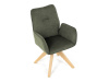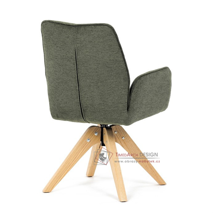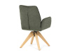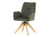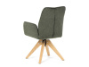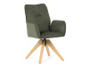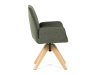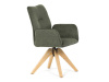 Její pohodlný sedák i opěrák jsou čalouněny voděodolnou látkou v příjemném zeleném odstínu, což z ní činí skvělý doplněk do jakéhokoliv interiéru. Masivní dřevěné nohy v přírodní barvě dodávají židli stabilitu a odolnost, zatímco otočný mechanismus s funkcí 360° přináší uživatelský komfort. Tato jídelní židle je ideální nejen do domácností, ale také do kaváren či restaurací, kde je požadován moderní a funkční nábytek.