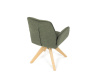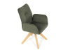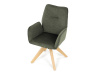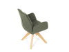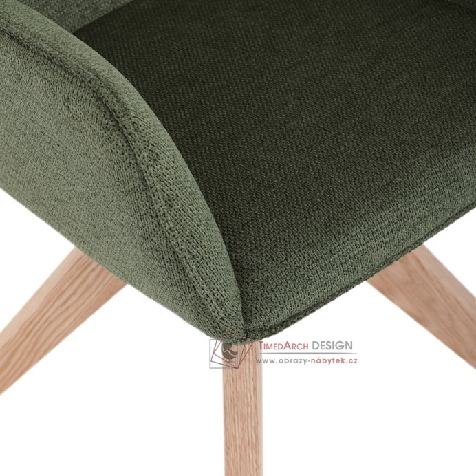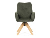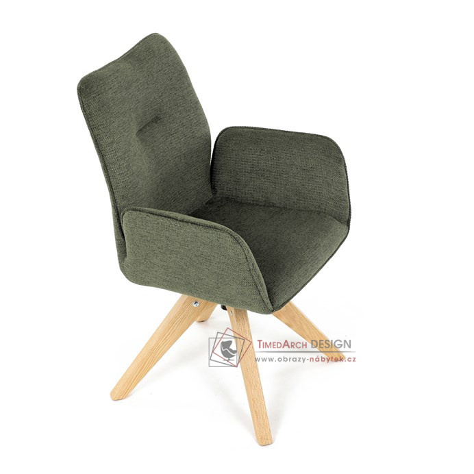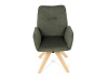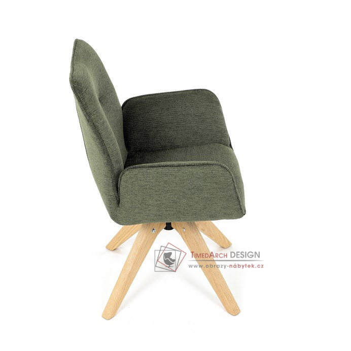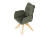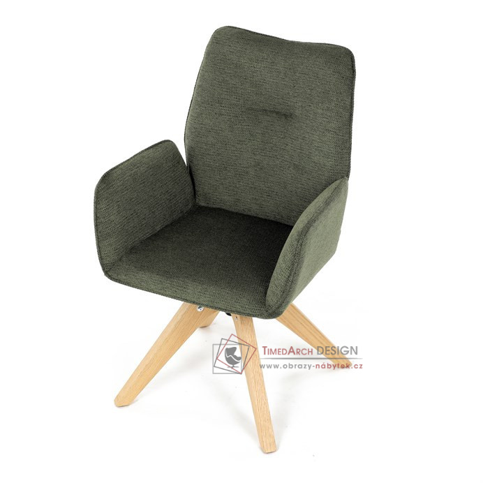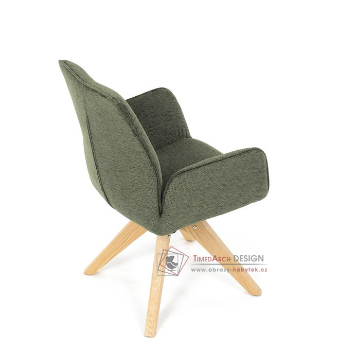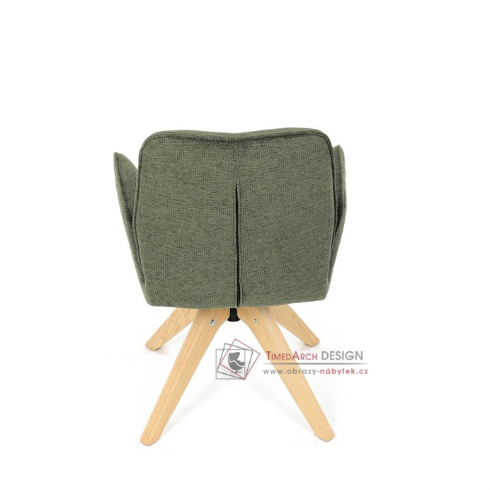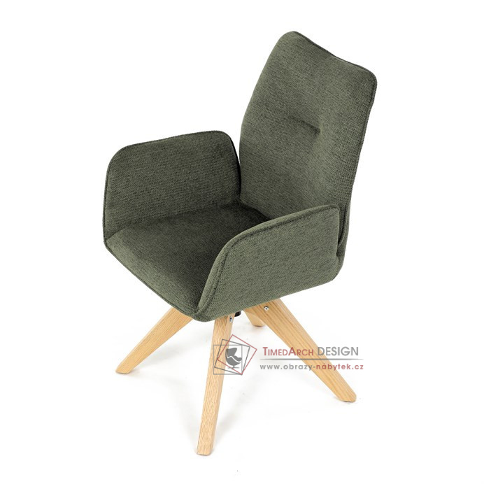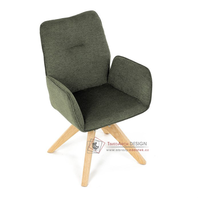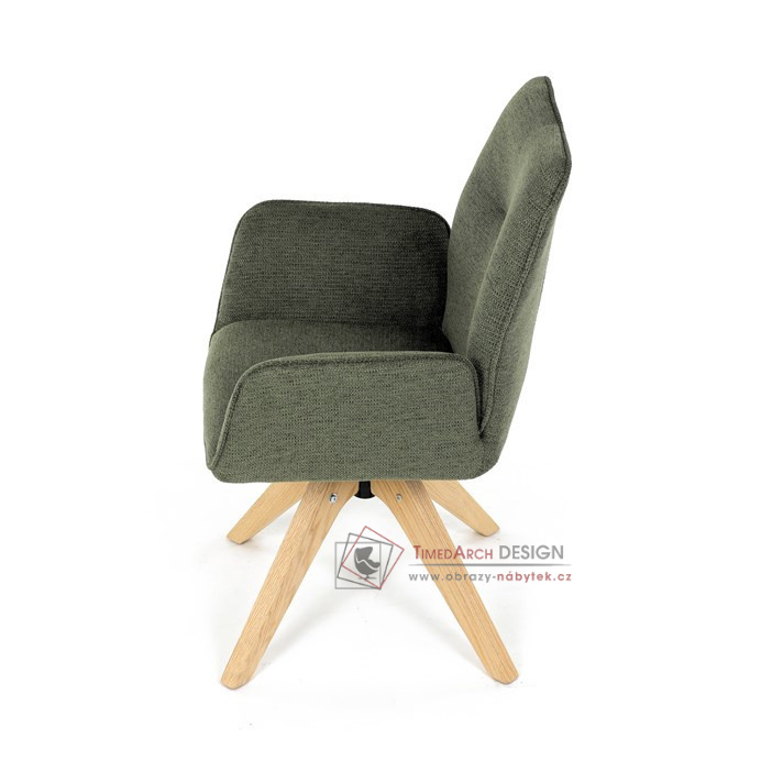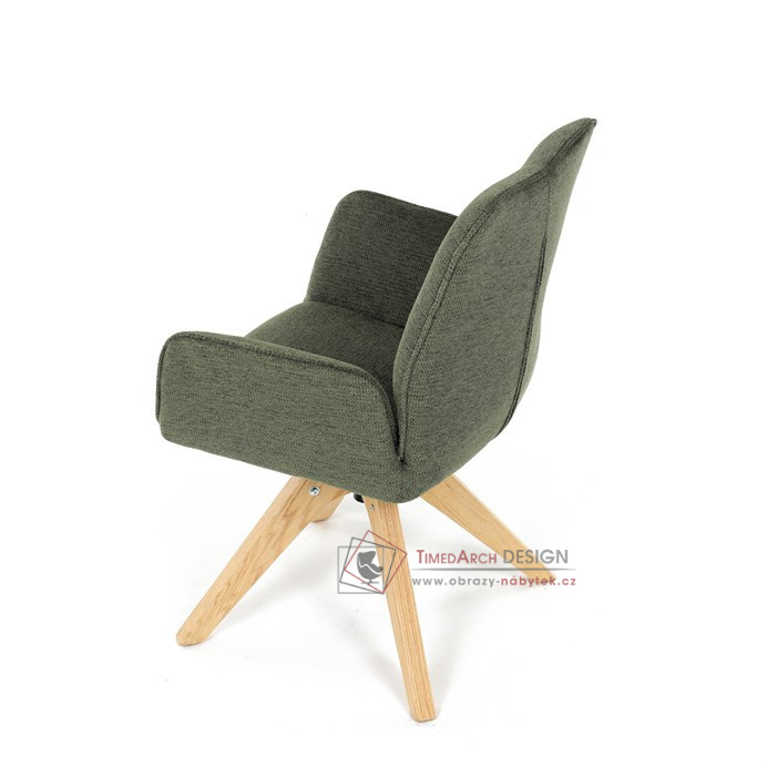 Její pohodlný sedák i opěrák jsou čalouněny voděodolnou látkou v příjemném zeleném odstínu, což z ní činí skvělý doplněk do jakéhokoliv interiéru. Masivní dřevěné nohy v přírodní barvě dodávají židli stabilitu a odolnost, zatímco otočný mechanismus s funkcí 360° přináší uživatelský komfort. Tato jídelní židle je ideální nejen do domácností, ale také do kaváren či restaurací, kde je požadován moderní a funkční nábytek.