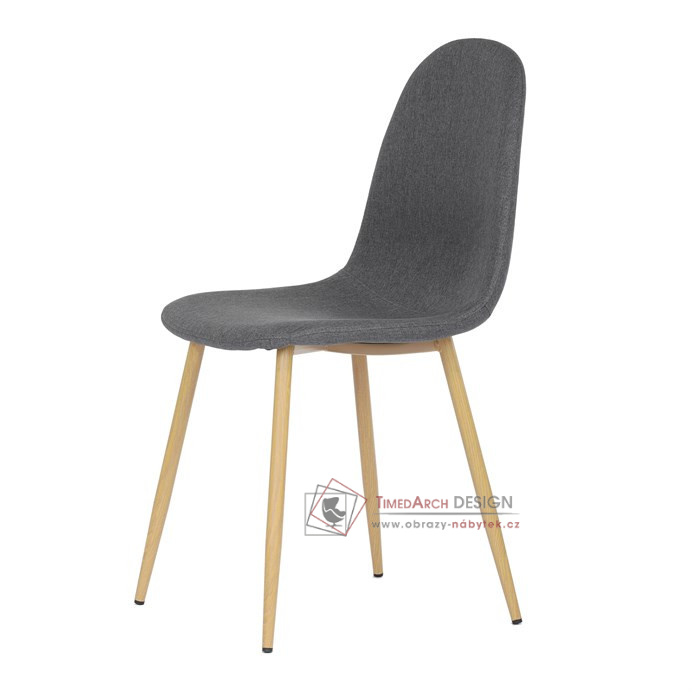 Sedák a opěrák židle je očalouněný látkou šedé barvy.