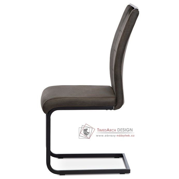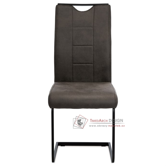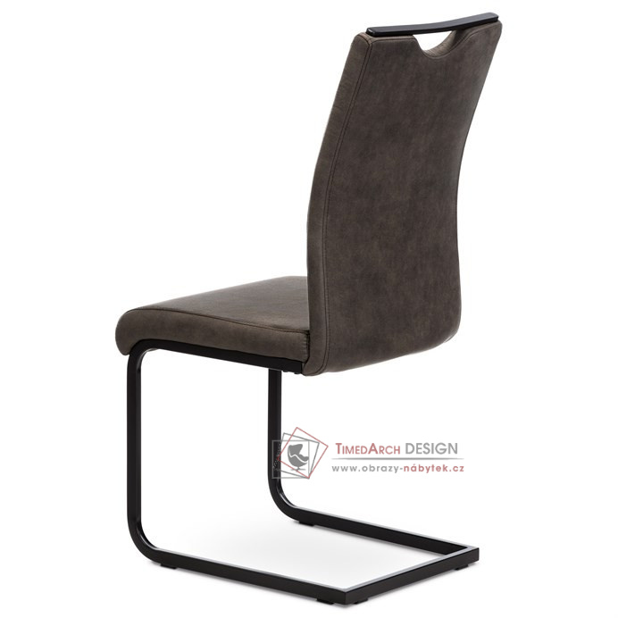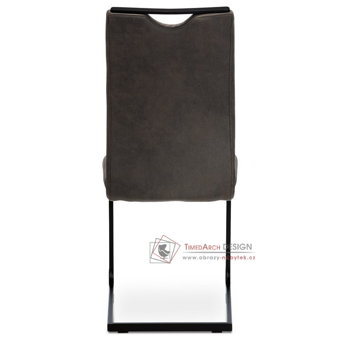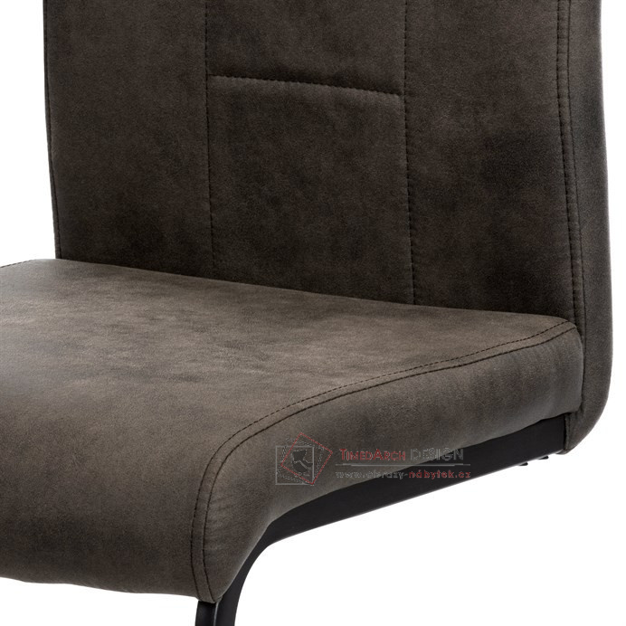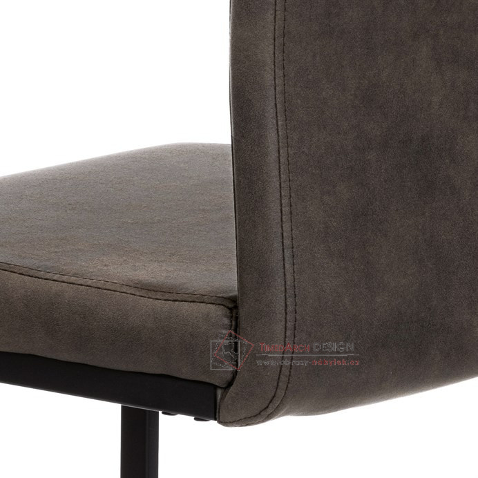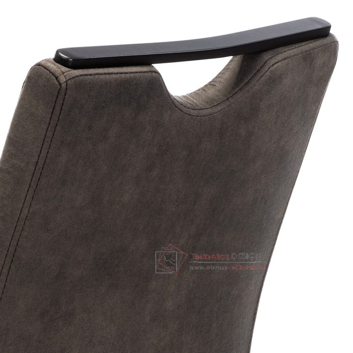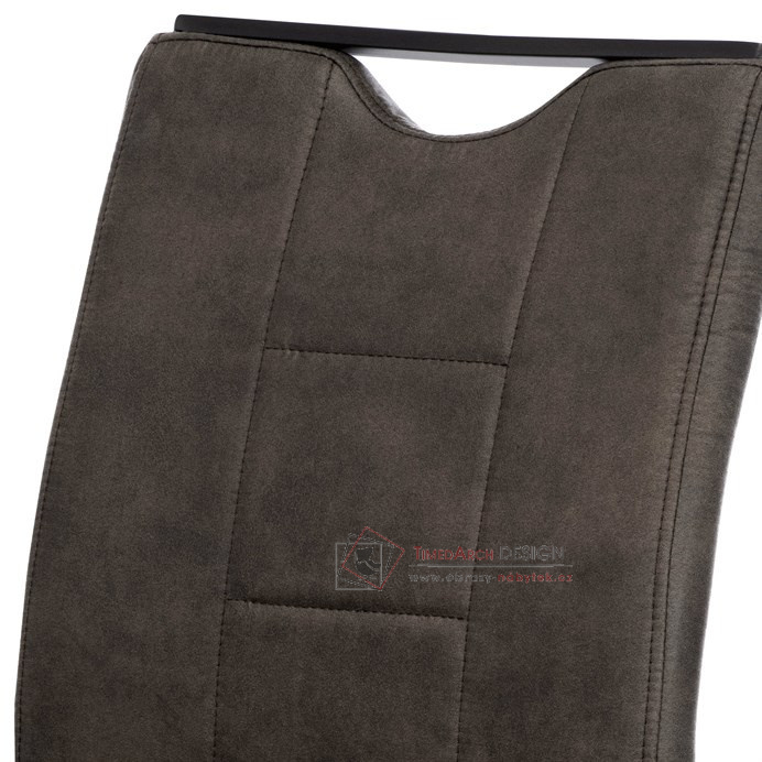 Potah je z šedé látky v trendy dekoru vintage kůže, s bílým H a obvodovým prošitím opěráku i sedáku. Polstrování je z PU pěny. Industriální vzhled podtrhuje kovová pohupová podnož lakovaná černou matnou práškovou barvou. Je obdélníkového průřezu a je opatřena černými plastové kluzáky, které sníží riziko poškození Vaší podlahy na minimum. Pro snazší manipulaci má židle i kovové madlo přes celou horní část opěráku. Nosnost židle je až 110 kg.