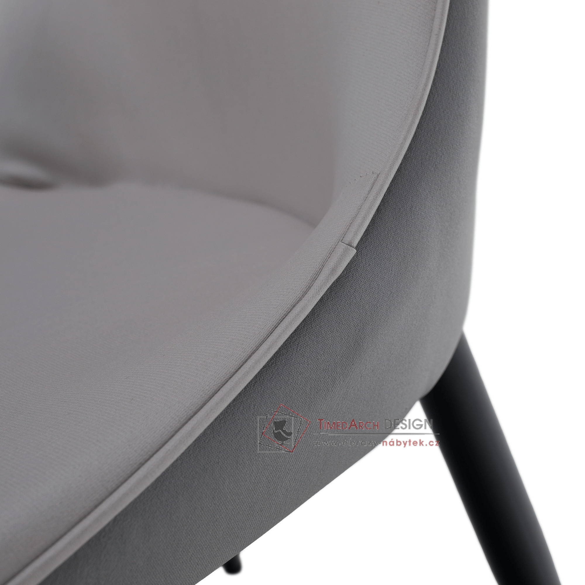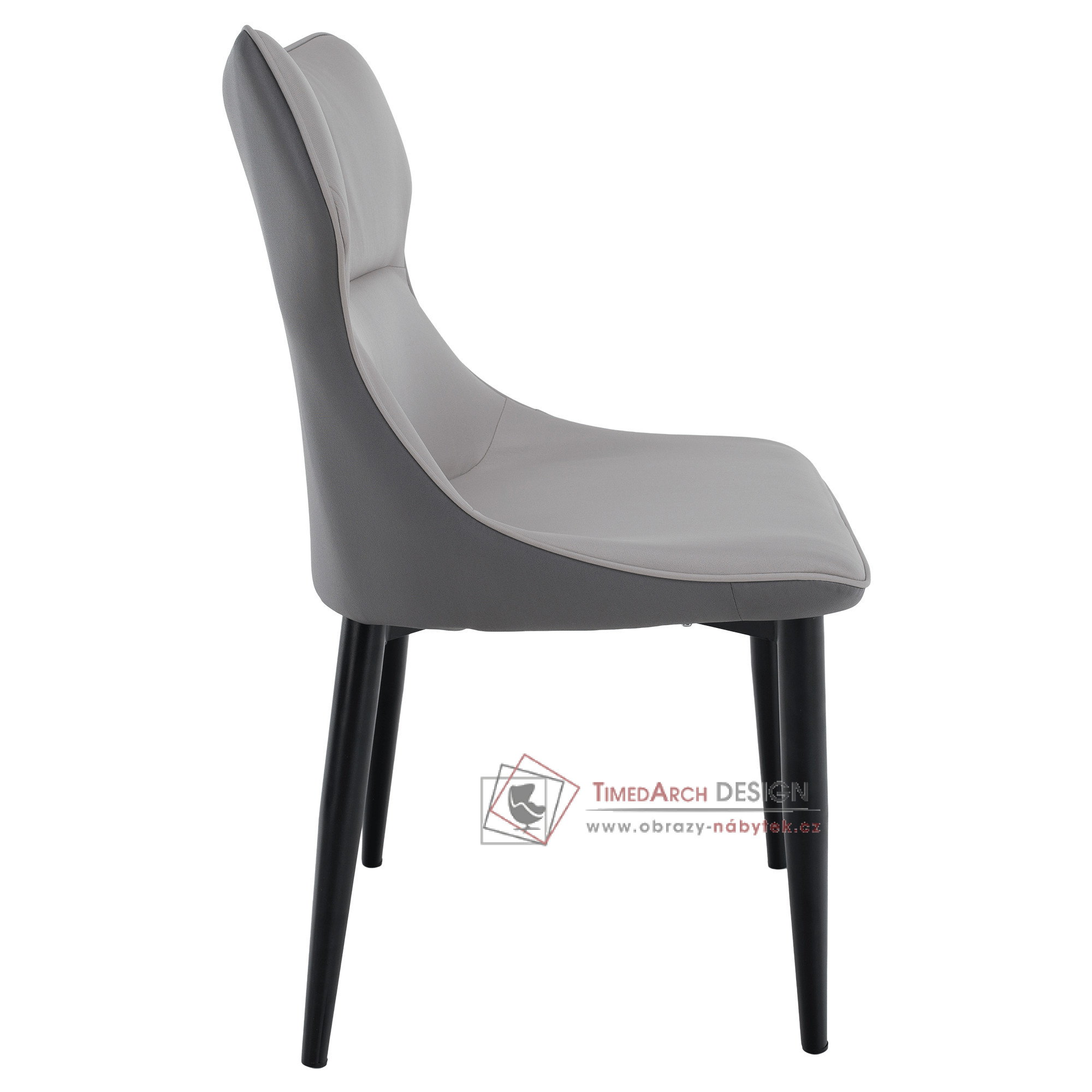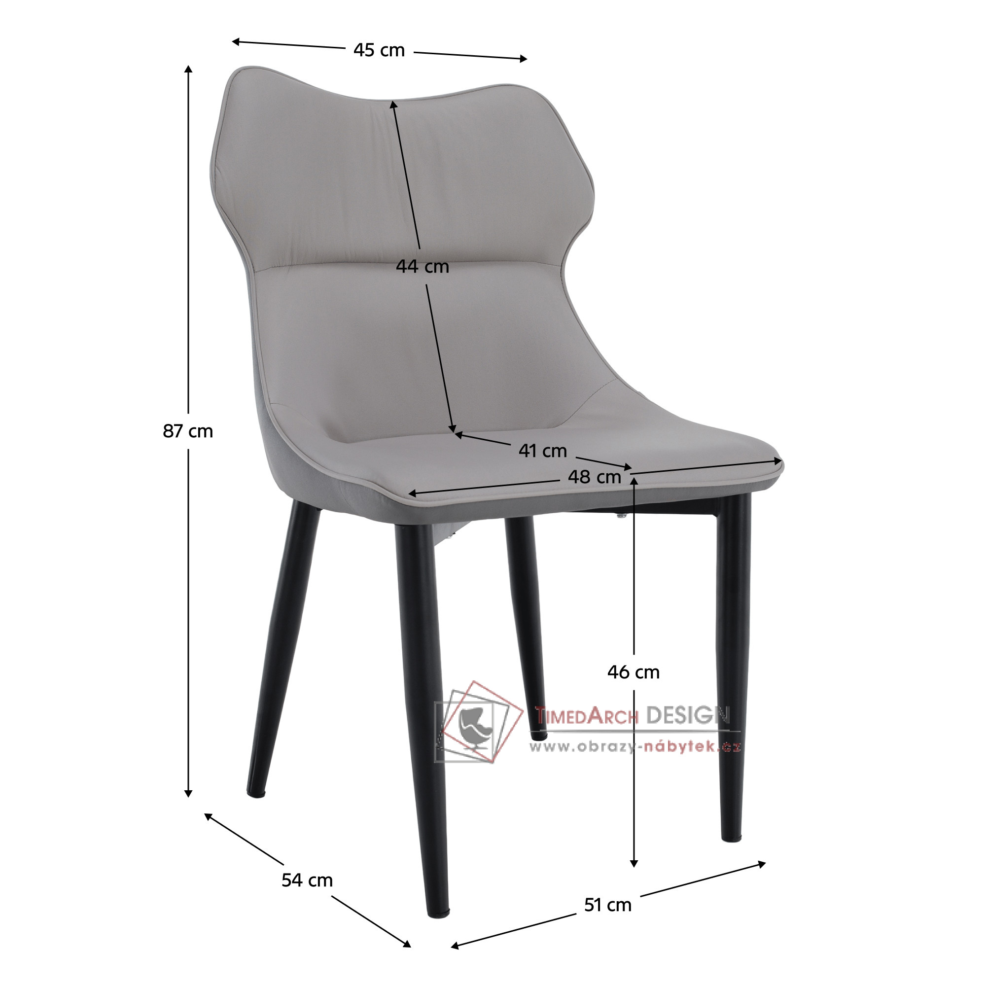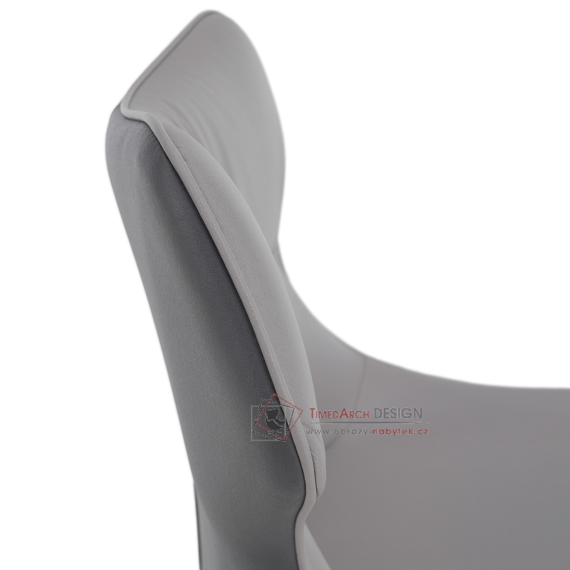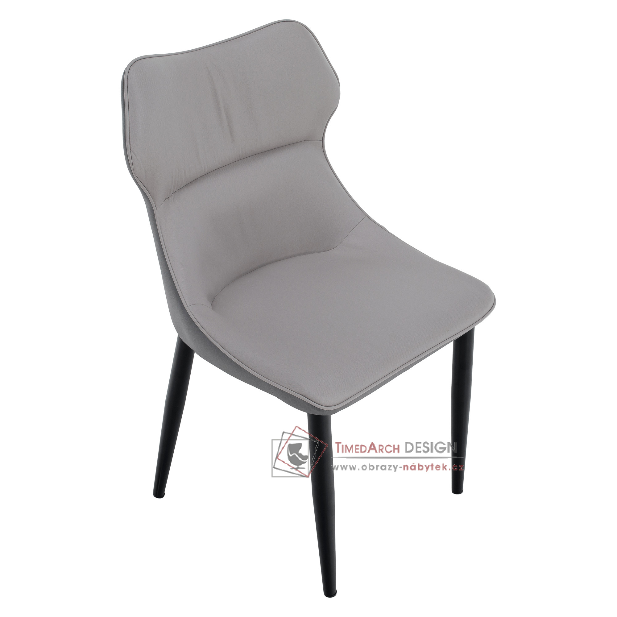 Jídelní židle TABITA s moderním tvarem, krásná a pohodlná. Židle je čalouněna látkou ve světle šedém a tmavě šedém barevném provedení (zadní část židle). Disponuje černýma kovovými nohama, které dotvářejí její stabilitu a odolnost. Dekorativní šití dodává židli pocit lehkosti a modernosti. Pohodlně se usaďte a vychutnejte si každodenní stolování s radostí.