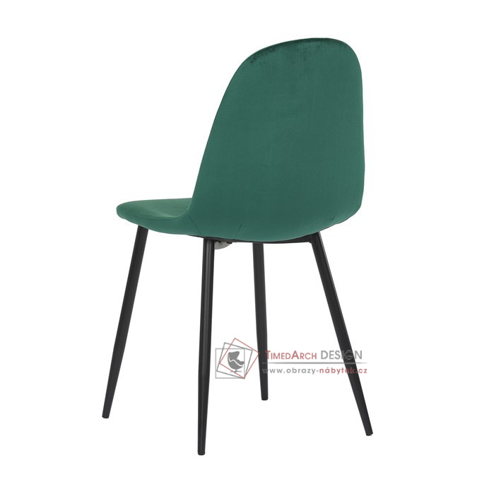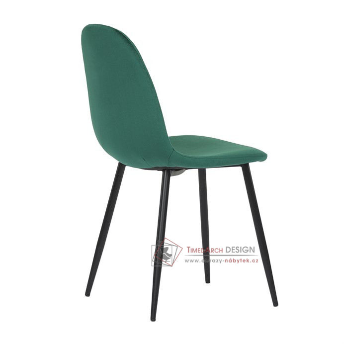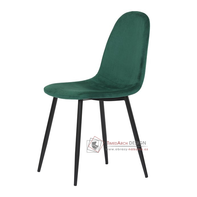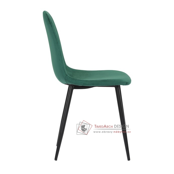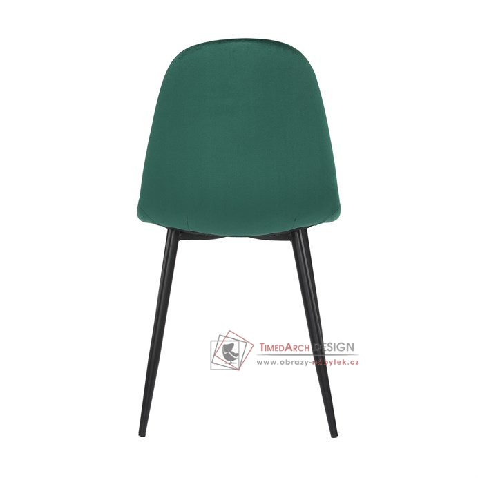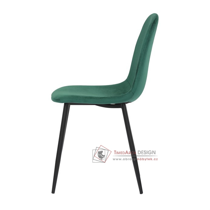 Sedák a opěrák židle je očalouněný sametovou látkou zelené barvy.