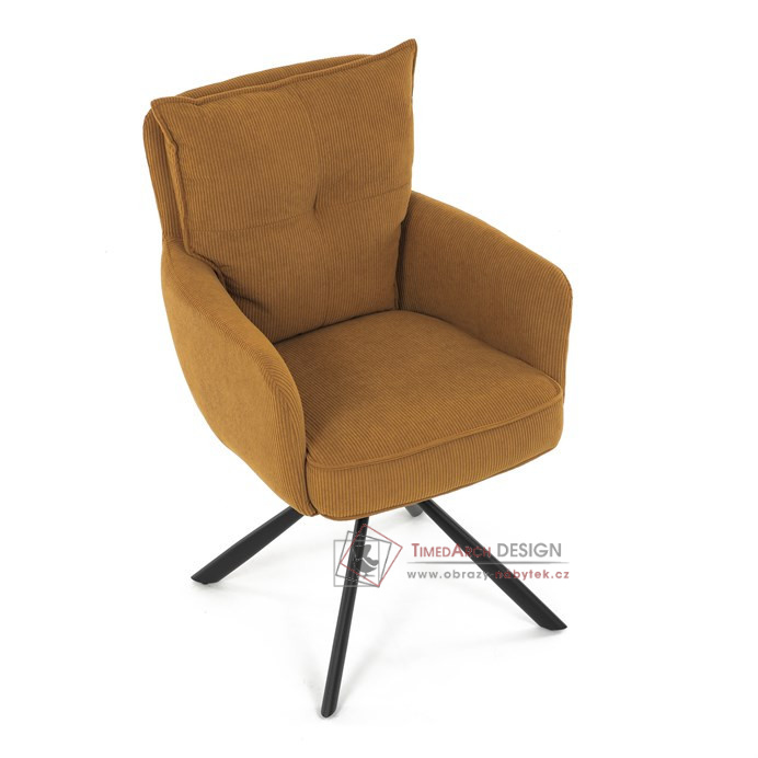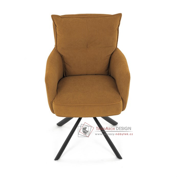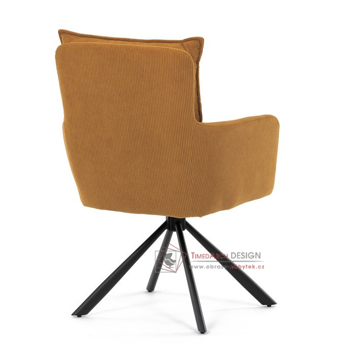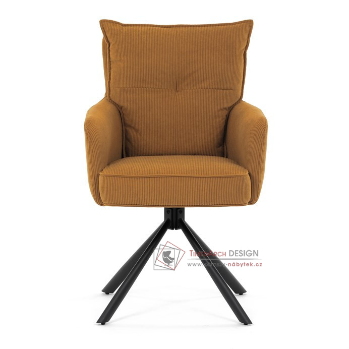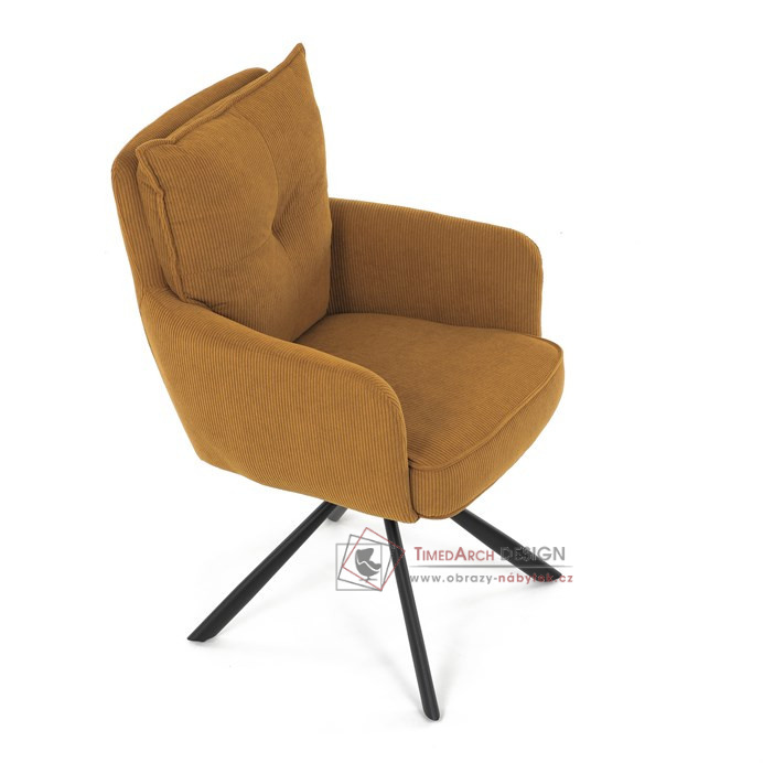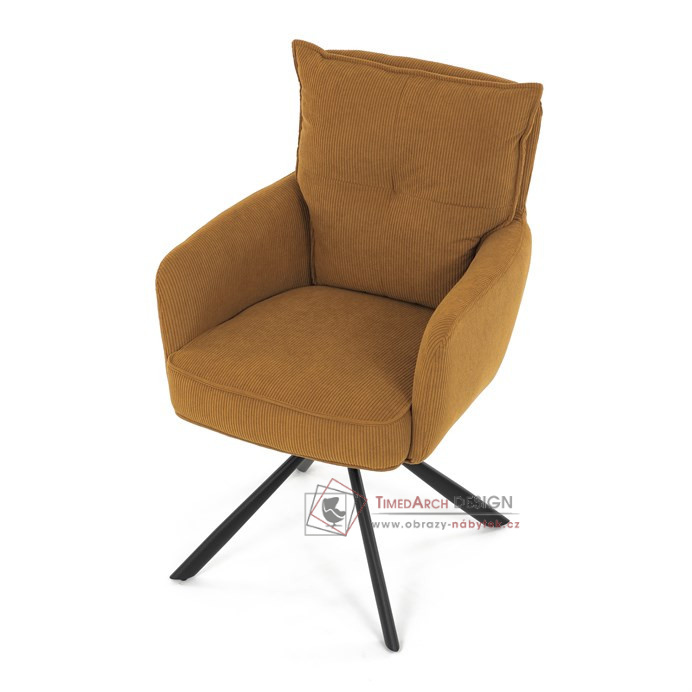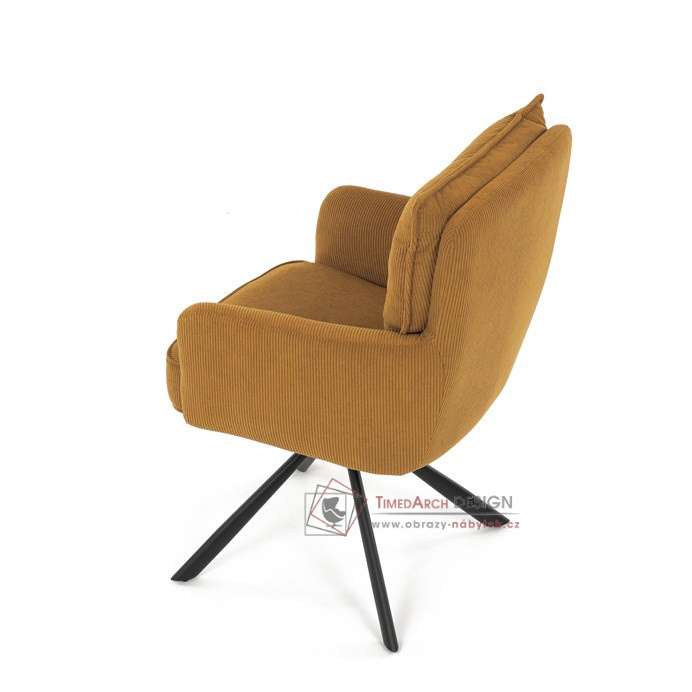Jídelní židle s označením HC-X1128 YEL2 nabízí komfortní sezení díky vysokému polstrování sedáku a opěradla potažených žlutou manšestrovou látkou, která je příjemná na dotek a snadno se udržuje.