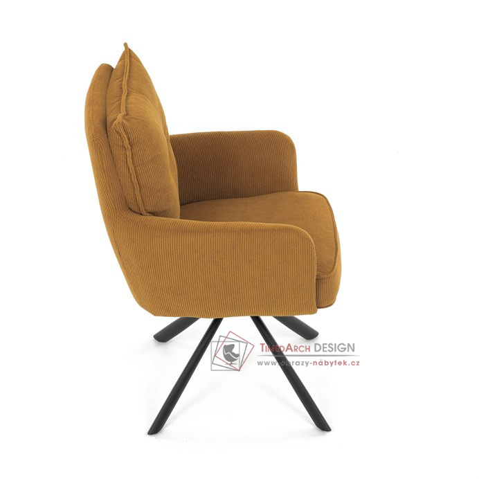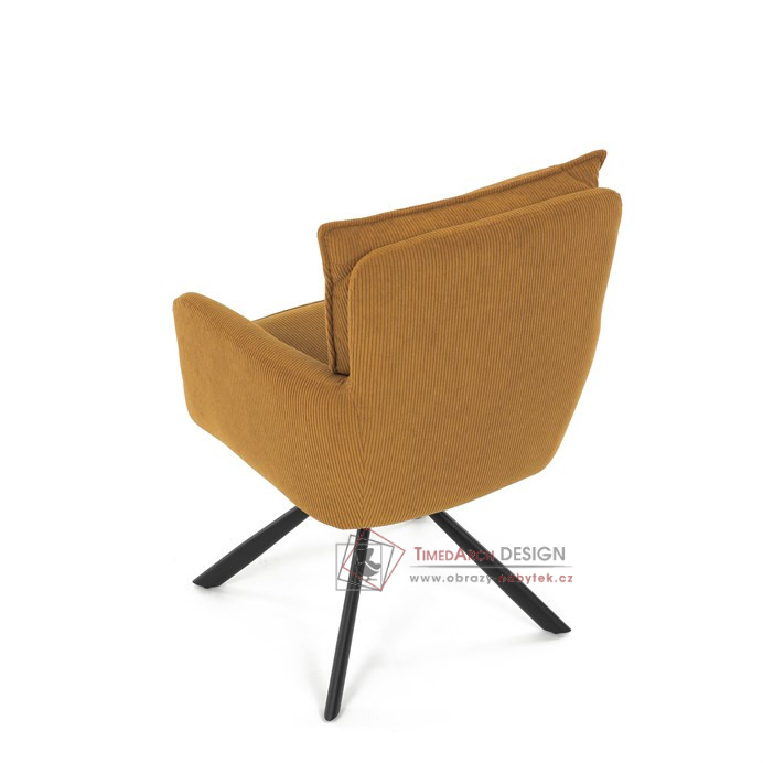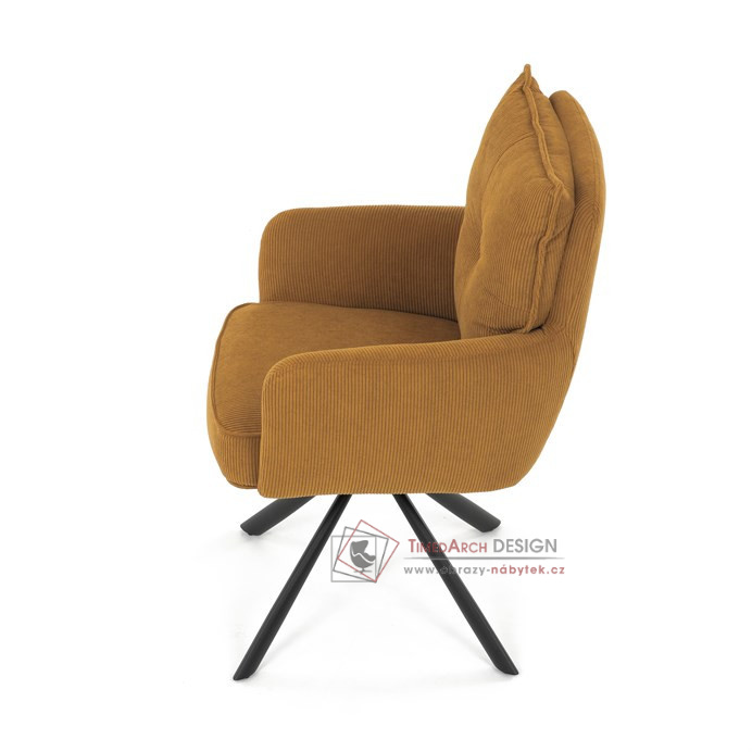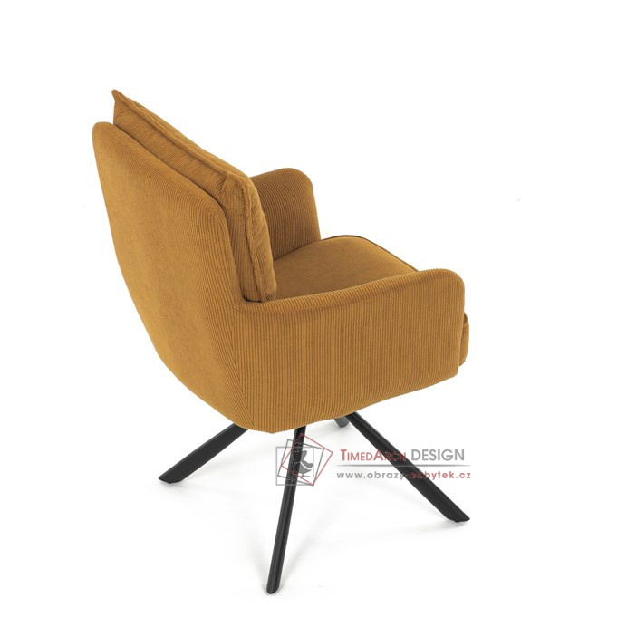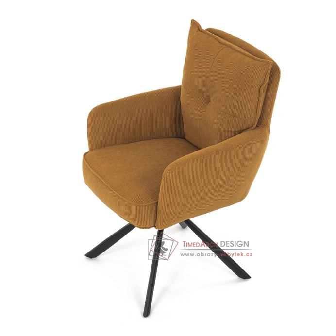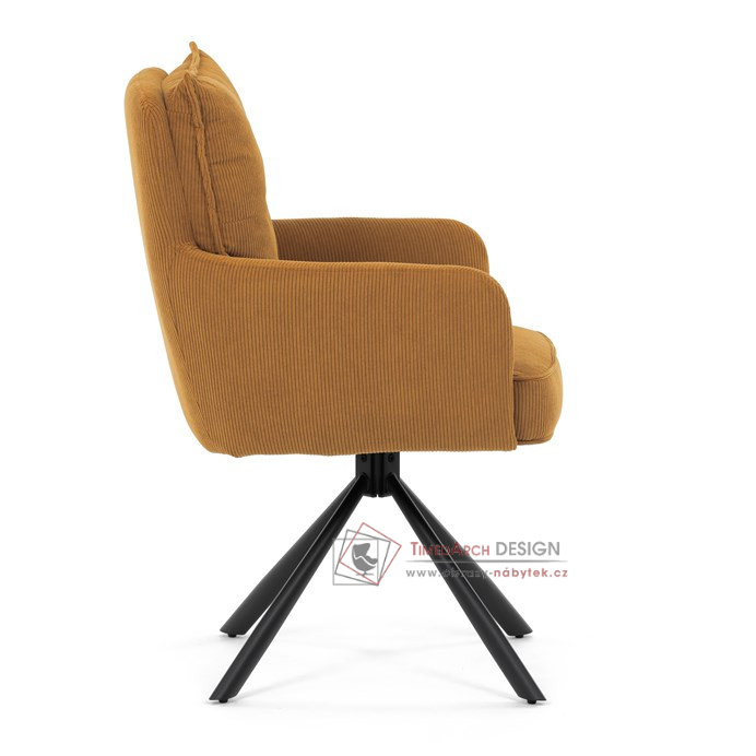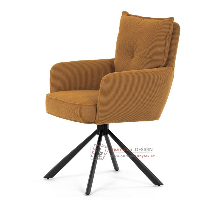 Jídelní židle s označením HC-X1128 YEL2 nabízí komfortní sezení díky vysokému polstrování sedáku a opěradla potažených žlutou manšestrovou látkou, která je příjemná na dotek a snadno se udržuje.