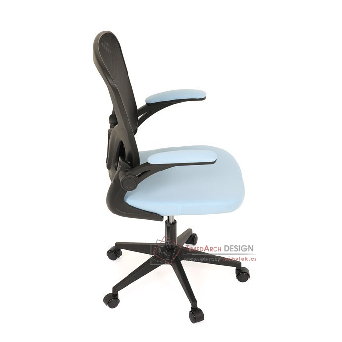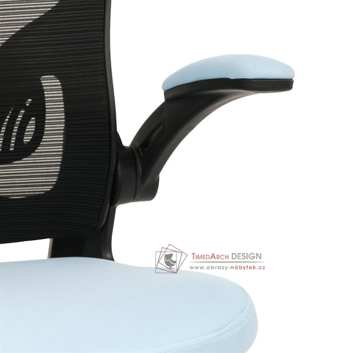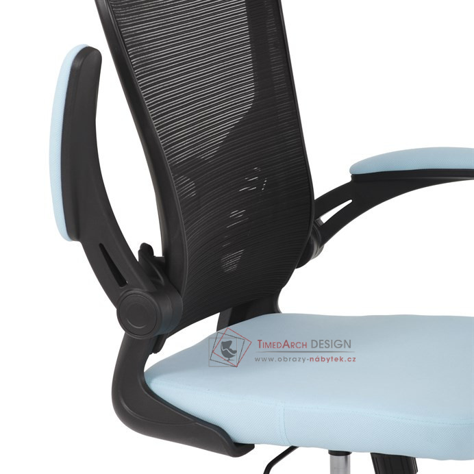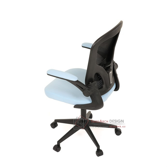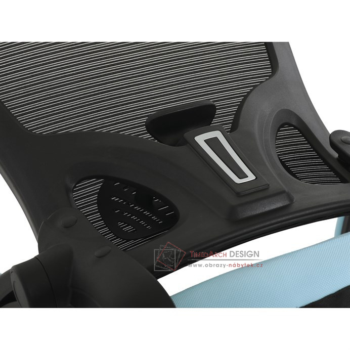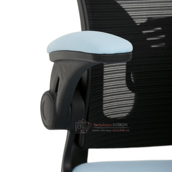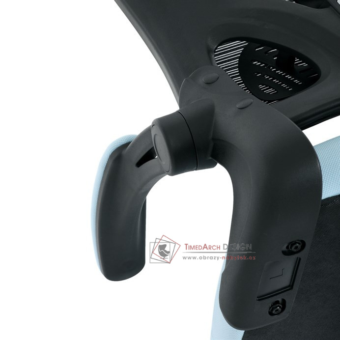 Modrá potahová látka ze síťoviny zajišťuje výbornou prodyšnost, zatímco čalouněné područky přidávají na komfortu. Posuvná bederní opěrka dovoluje individuální nastavení podpory pro maximální ergonomii. Tento skvostný kousek je ideální volbou nejen pro obchody, ale i soukromé zákazníky hledající kvalitu a design.