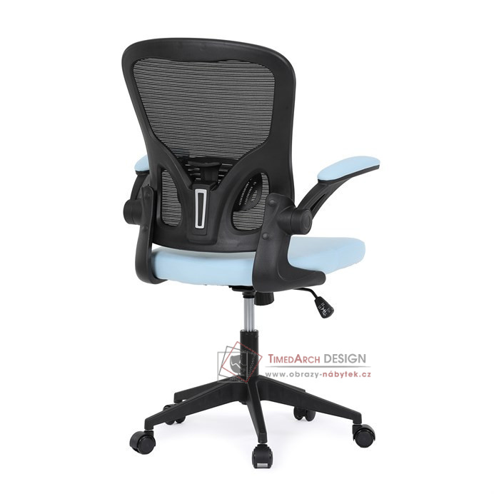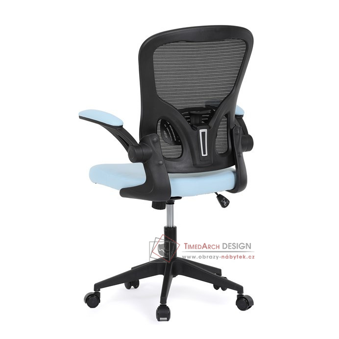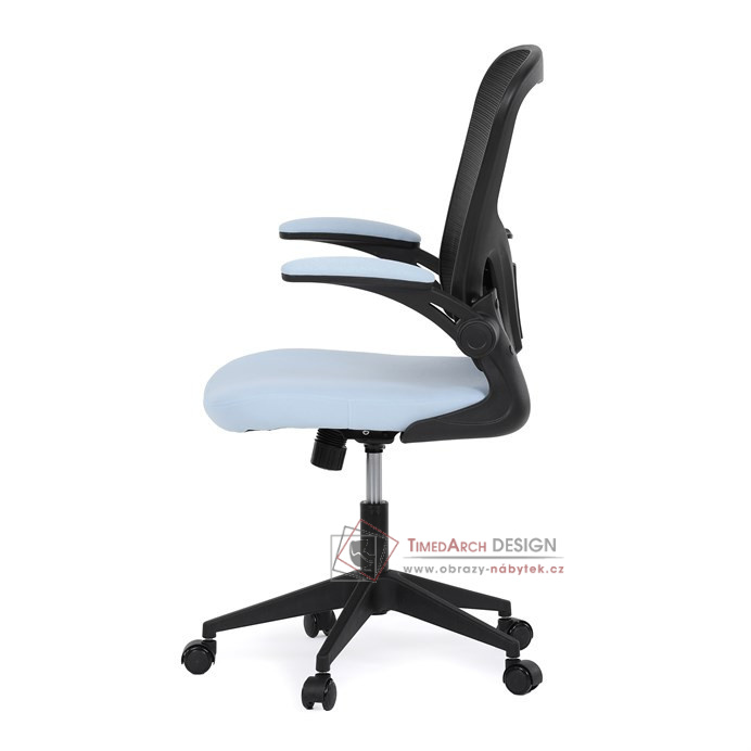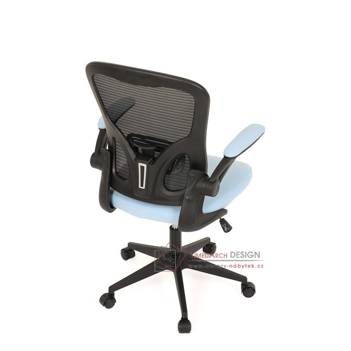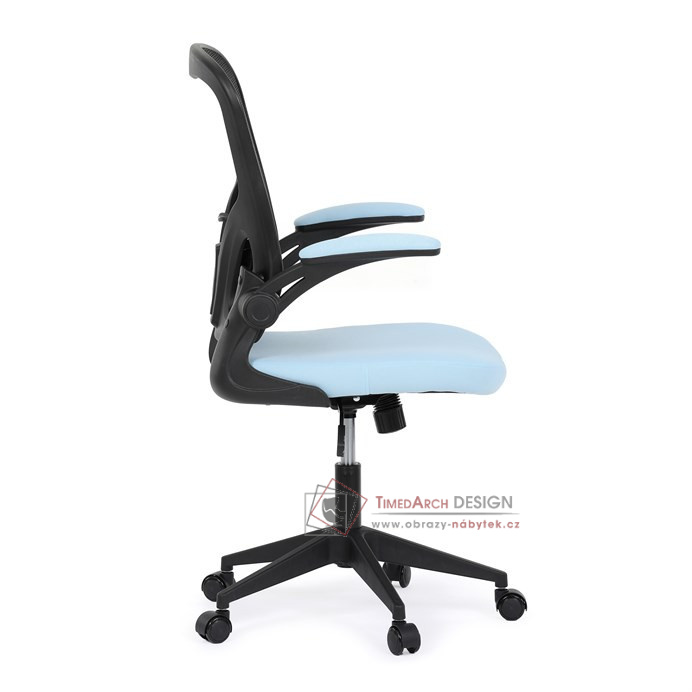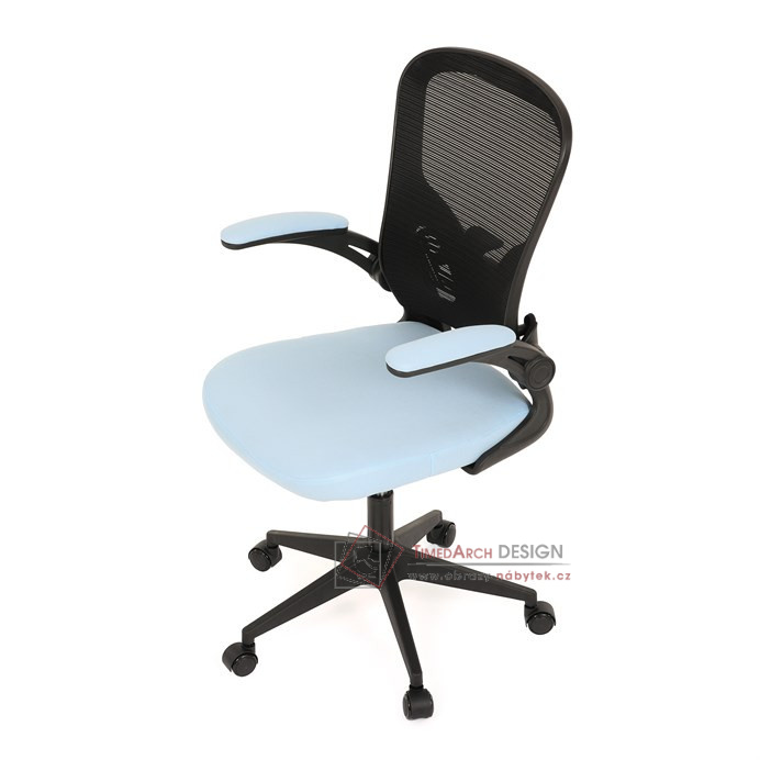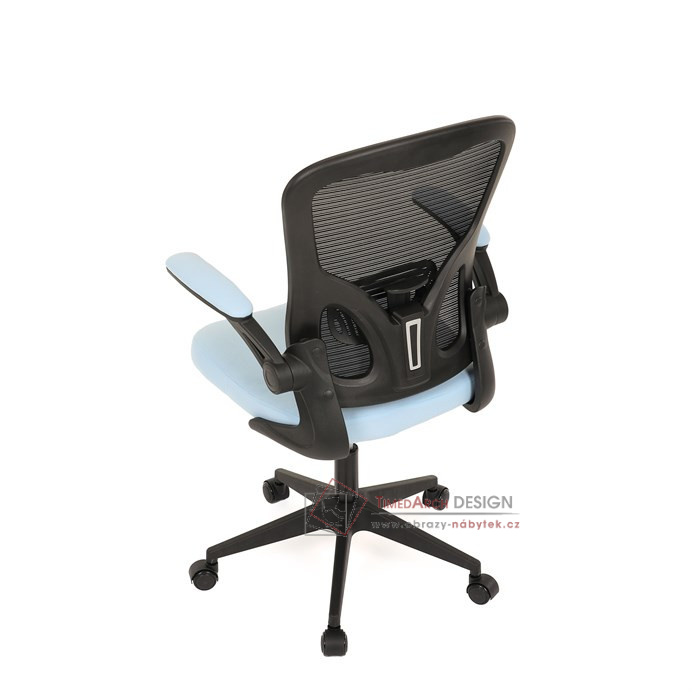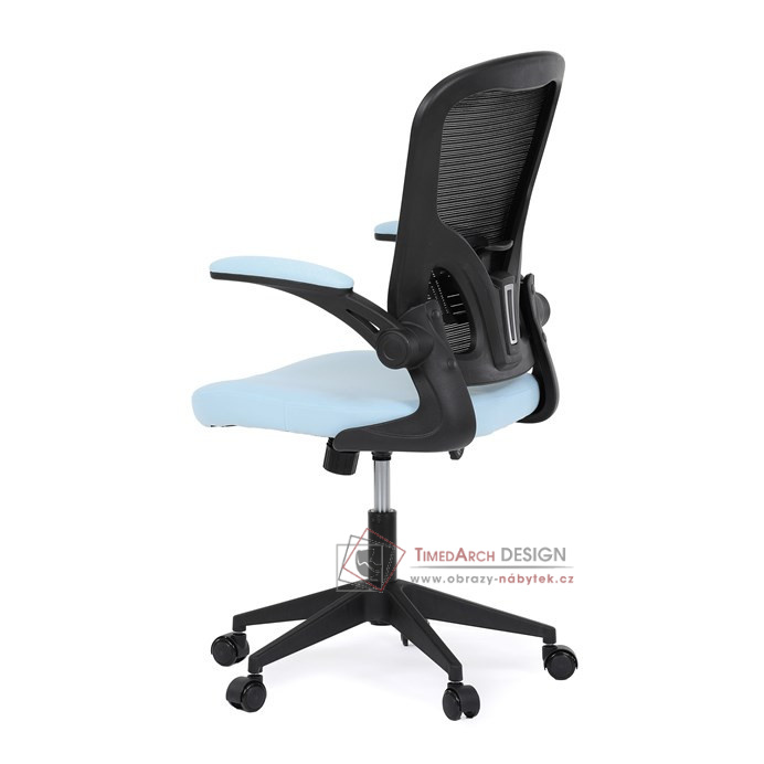 Modrá potahová látka ze síťoviny zajišťuje výbornou prodyšnost, zatímco čalouněné područky přidávají na komfortu. Posuvná bederní opěrka dovoluje individuální nastavení podpory pro maximální ergonomii. Tento skvostný kousek je ideální volbou nejen pro obchody, ale i soukromé zákazníky hledající kvalitu a design.