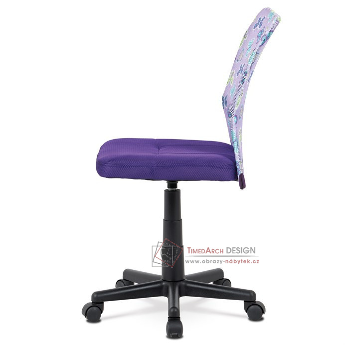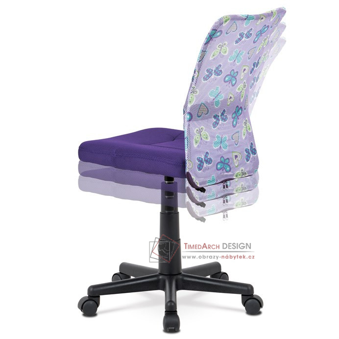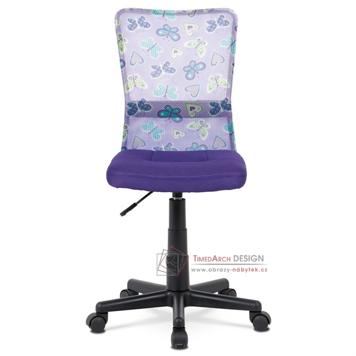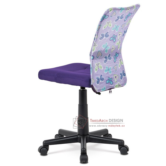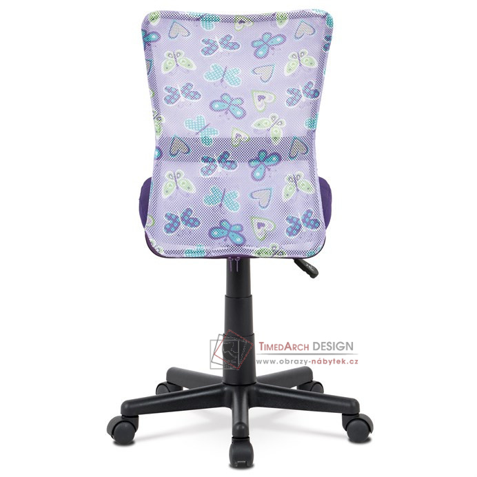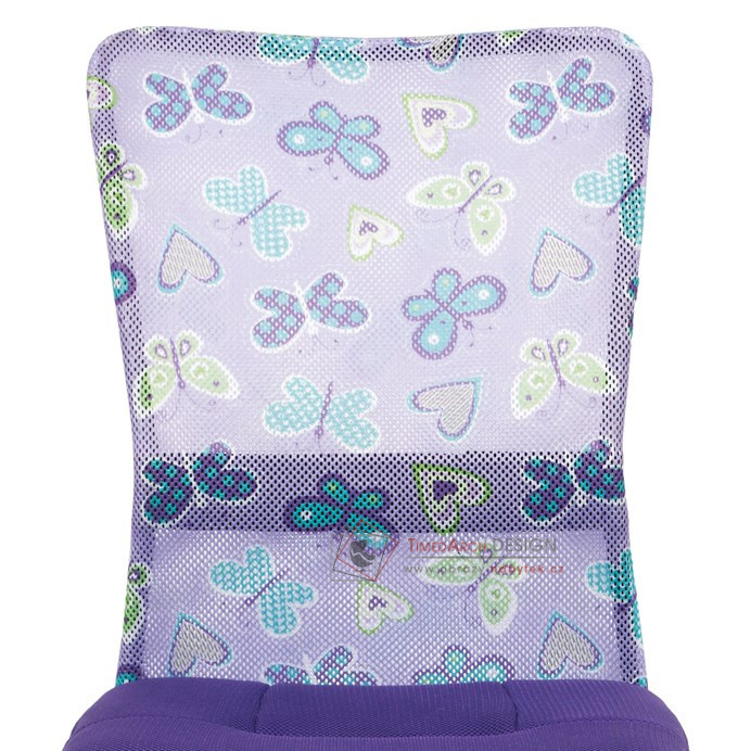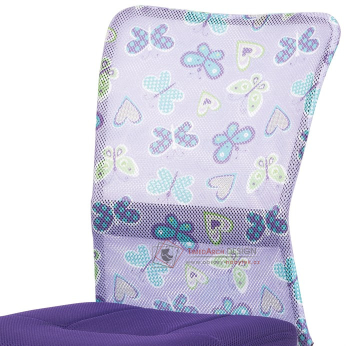 Dětská kancelářská židle čalouněná látkou MESH ve stylové fialové barvě, opěrák s motivem.