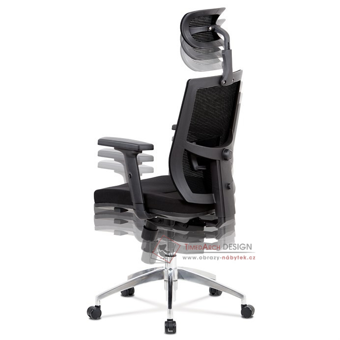 Židle je výškově nastavitelná, vybavená synchronním mechanismem. Plastové područky jsou polohovací a výškově nastavitelné. Díky malé páčce můžete samostatně polohovat sedák. Síťovaná, výškově nastavitelná a polohovací opěrka hlavy a nastavitelná bederní opěrka. Kříž z leštěného hliníku s pogumovanými kolečky vhodnými na tvrdé typy podlah.