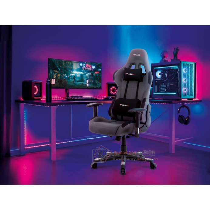 Kancelářská židle ve sportovním designu v šedé látce s černými detaily se stane nezbytným doplňkem každého závodníka.