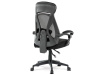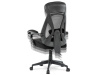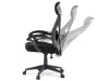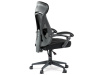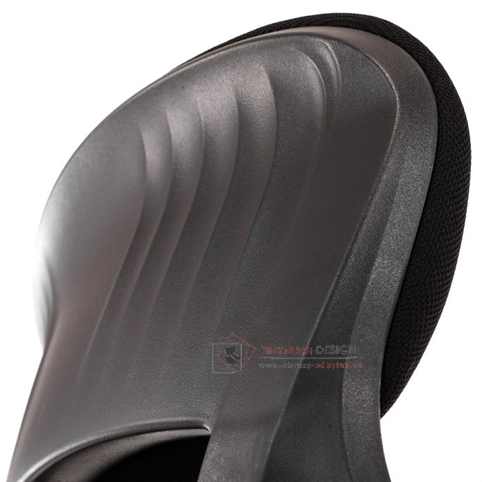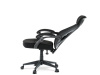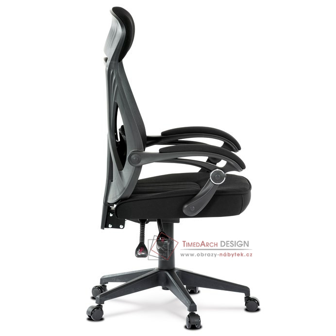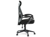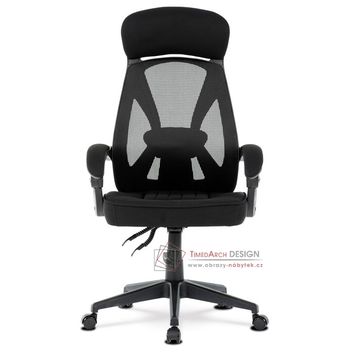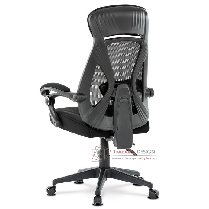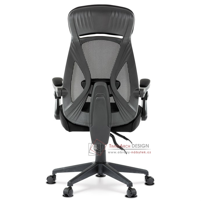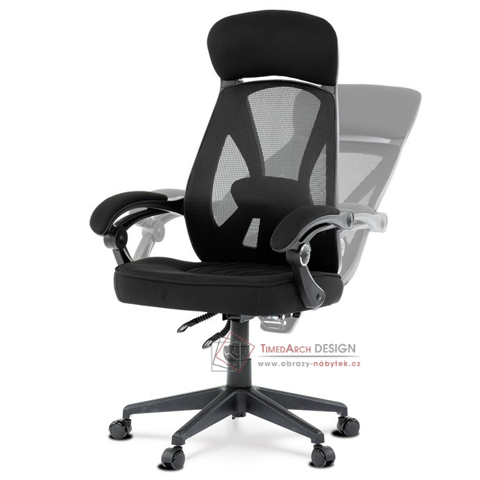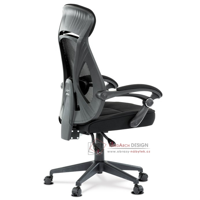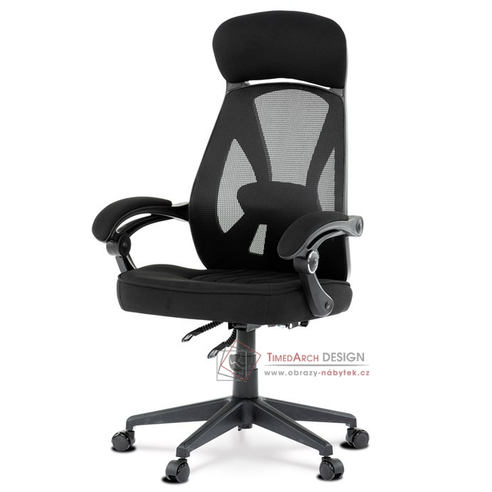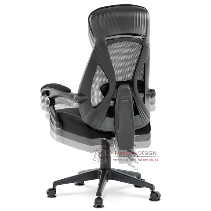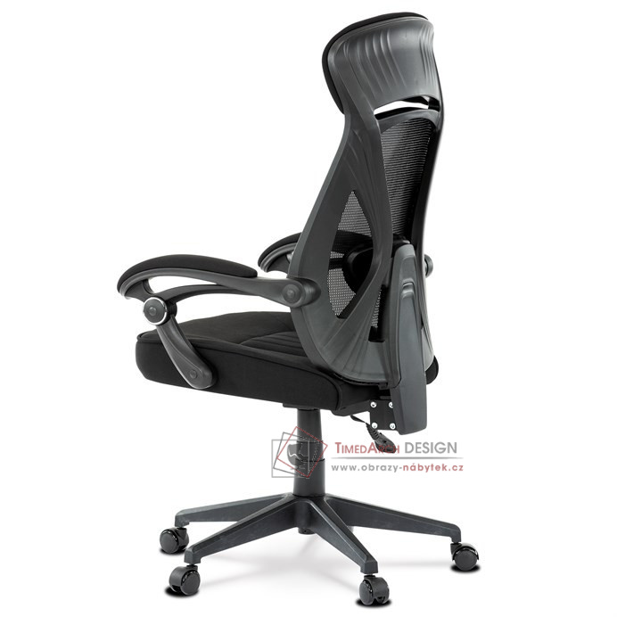 Jedná se o moderní designové křeslo, navržené pro standardní a náročnou kancelářskou práci, ale plně vyhovuje i pro požadavky PC hráčů. To vše v maximálním pohodlí a při dokonalé ergonomii sezení. Potah je kombinací černé, jemně hrubé látky na sedáku, opěrkách, bederní opěrce i o opěrce hlavy a černé síťoviny MESH na vysokém opěráku. Sedák má zvýšené okraje a střed je zpevněn výrazným a dekorativním prošitím. Opěrák je masivní černý plastový výlisek s designovými prolisy na ladných oblých tvarech. Výplň sedáku i hlavové opěrky je z velmi kvalitní a tuhé PU pěny. Křeslo je vybaveno permanent contact mechanismem s plynulou aretací. Při vypnutí je možné se s opěradlem volně pohupovat. Výška sezení se upravuje jednou páčkou na pravé straně přes kvalitní plynový píst. Poloha opěráku se nastavuje druhou páčkou, umístěnou rovněž na pravé straně křesla. Černý plastový kříž je osazen černými plastovými kolečky pr. 5 cm s gumovým obvodem ideálním na tvrdé podlahy. Se stabilitou celých 70 cm průměru kříže si můžete dovolit opravdu hodně jak z kancelářské, tak herní činnosti. Vysoký, prodyšný a ergonomicky navržený opěrák s integrovanou zesílenou opěrkou hlavy, polstrovanou a výškově nastavitelnou bederní opěrkou slouží nejen jako výborná opora celých zad a také podporuje správné držení páteře. Područky jsou plastové, polstrované a potažené černou látkou. Šíře je 7,5 cm, délka ložné plochy 32 cm a výška 3 cm. Při sklápění sedáku se pohybují a kopírují jeho pohyb a polohu. Nosnost židle je až 130 kg. Toto křeslo je skvělou volbou, ať stojí za kancelářským nebo hracím stolem. Svým černým provedením s velmi decentními chromovými doplňky na područkách působí vždy velmi luxusně. Kvalita zpracování, důraz na pohodlí a ergonomii, to zaručuje pohodu při denní kancelářské práci i herních večerech.