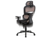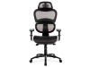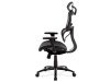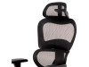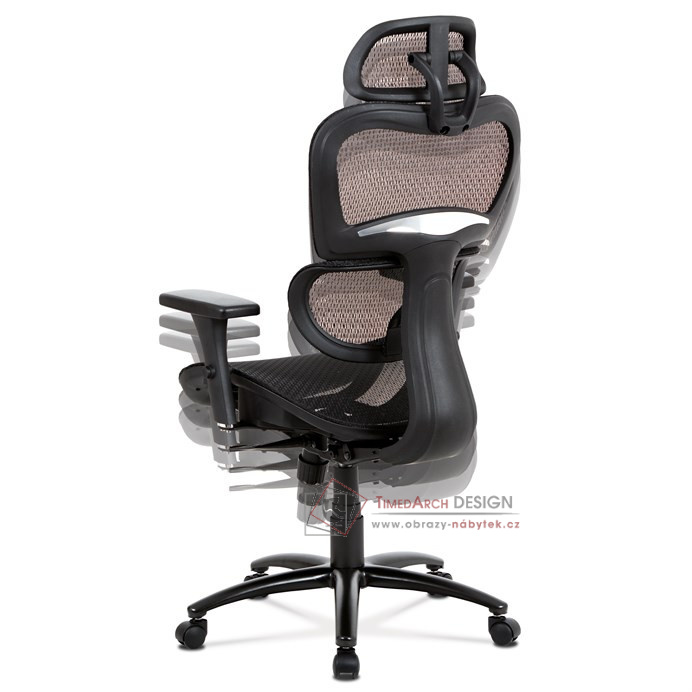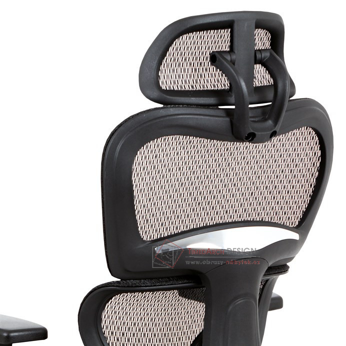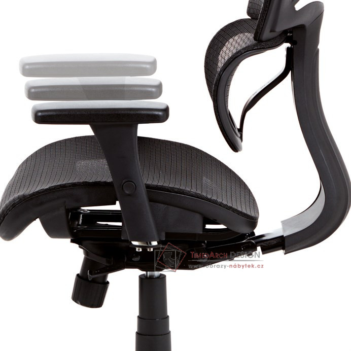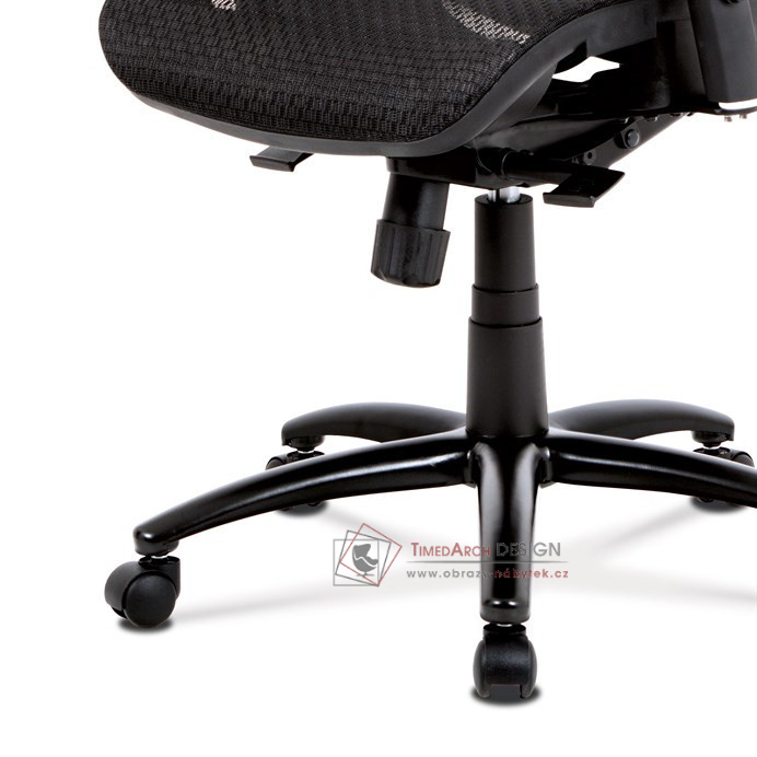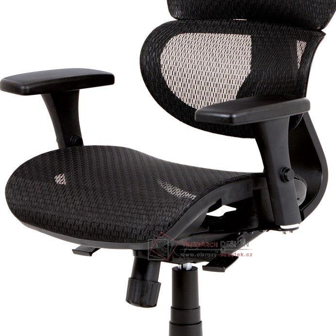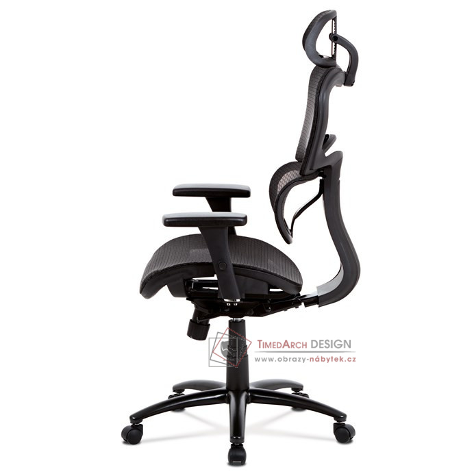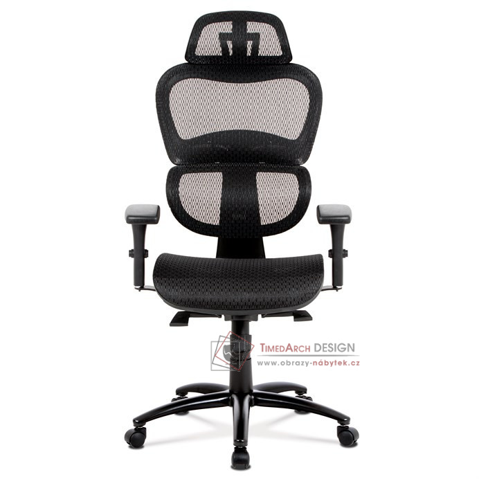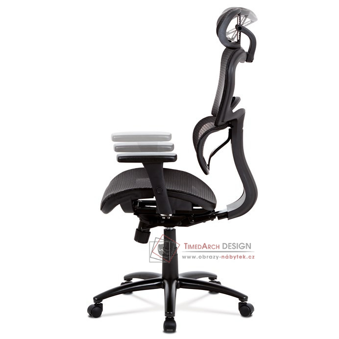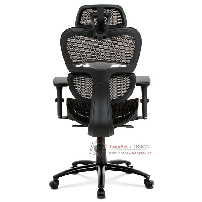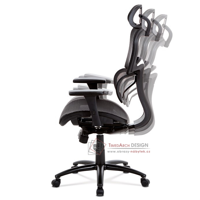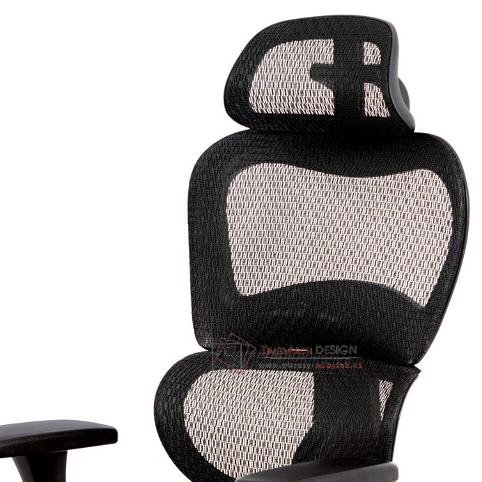 Potah je ze síťoviny MESH v černé barvě. Synchronní mechanismus lze aretovat v několika polohách. Područky umožňují nastavit výšku i posouvat měkčené opěrky vpřed a vzad. Opěrka hlavy je horizontálně i vertikálně nastavitelná. Kříž je kovový, černý matný a kolečka univerzální. Opěrák je prodyšný a speciálně ergonomicky tvarovaný pro správné a zdravé držení zad i při náročné kancelářské práci.
