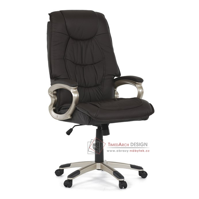 Kancelářská židle KA-Y293 BR je očalouněná tmavě hnědou ekokůží.