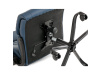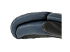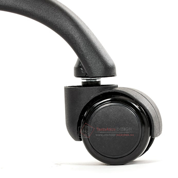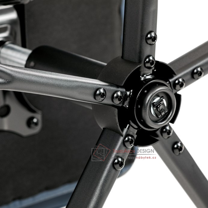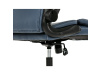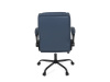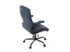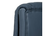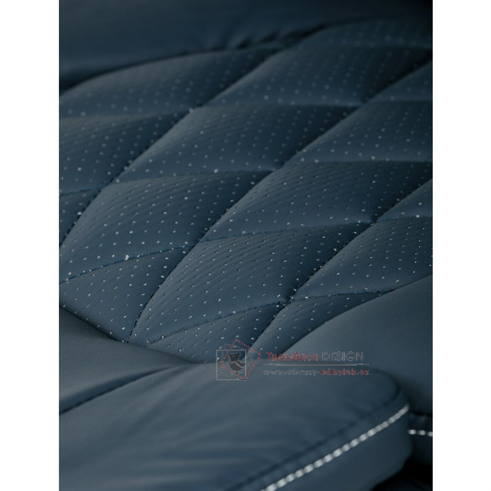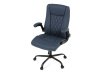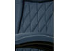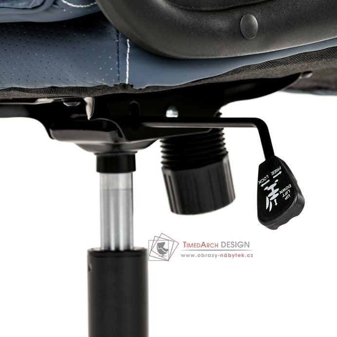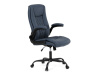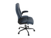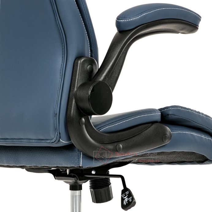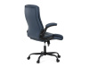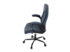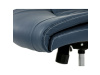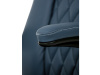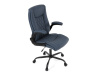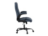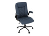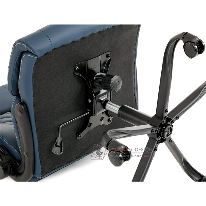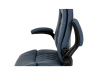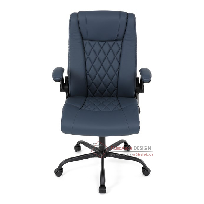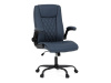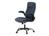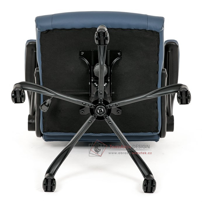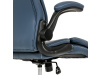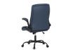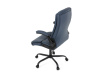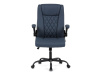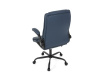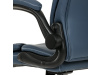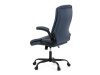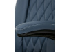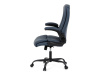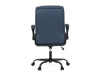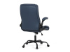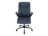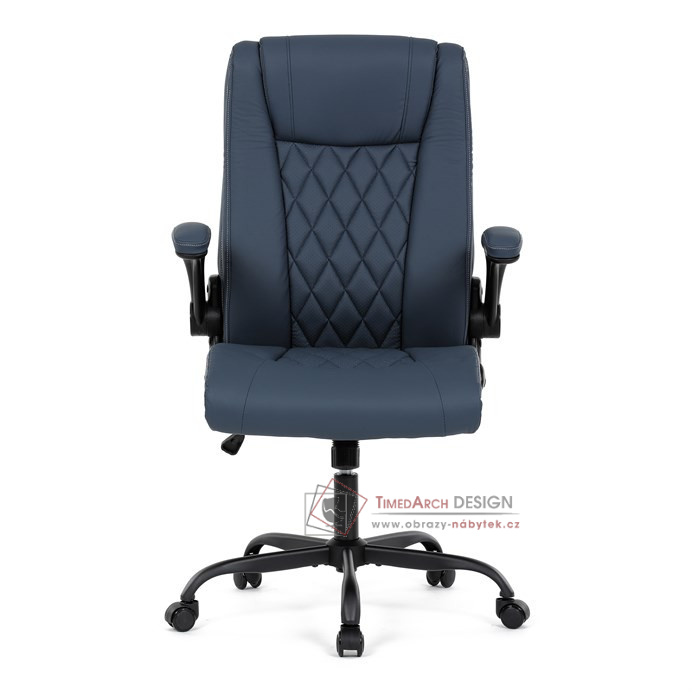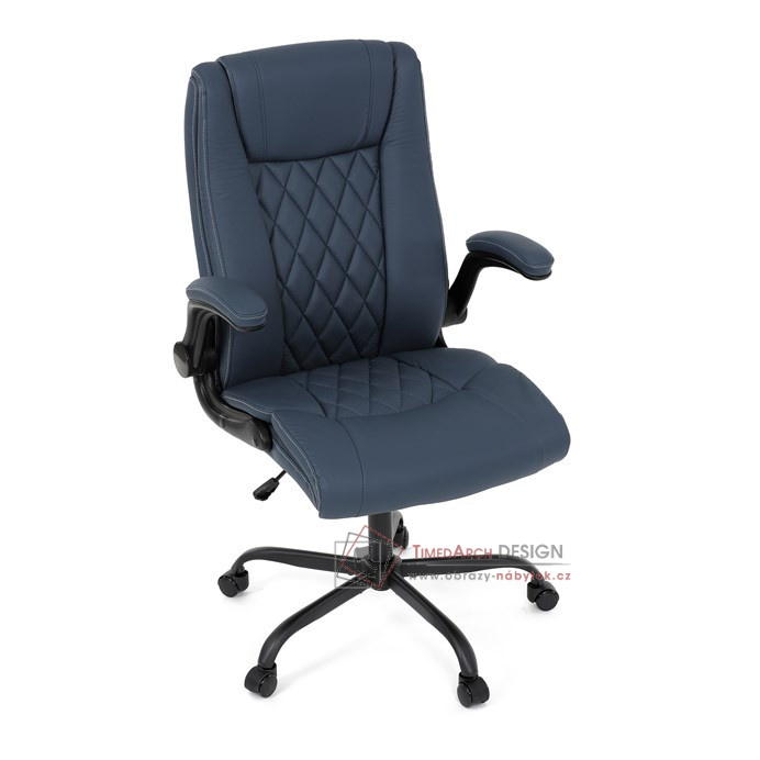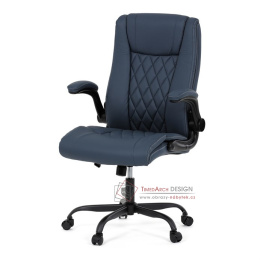 Židle je opatřena houpacím mechanismem a je očalouněna ekokůží modré barvy. Odklápěcí područky. Ozdobné prošití opěráku.